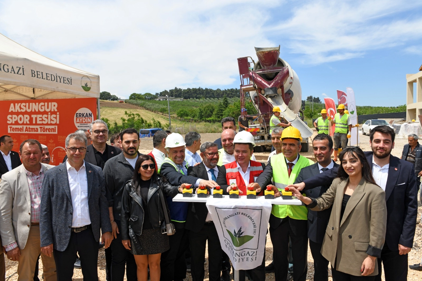 Konuşmaların ardından Başkan Aydın ve protokol üyeleri tarafından Aksungur Spor Tesisi inşaatının temeline ilk harç döküldü.