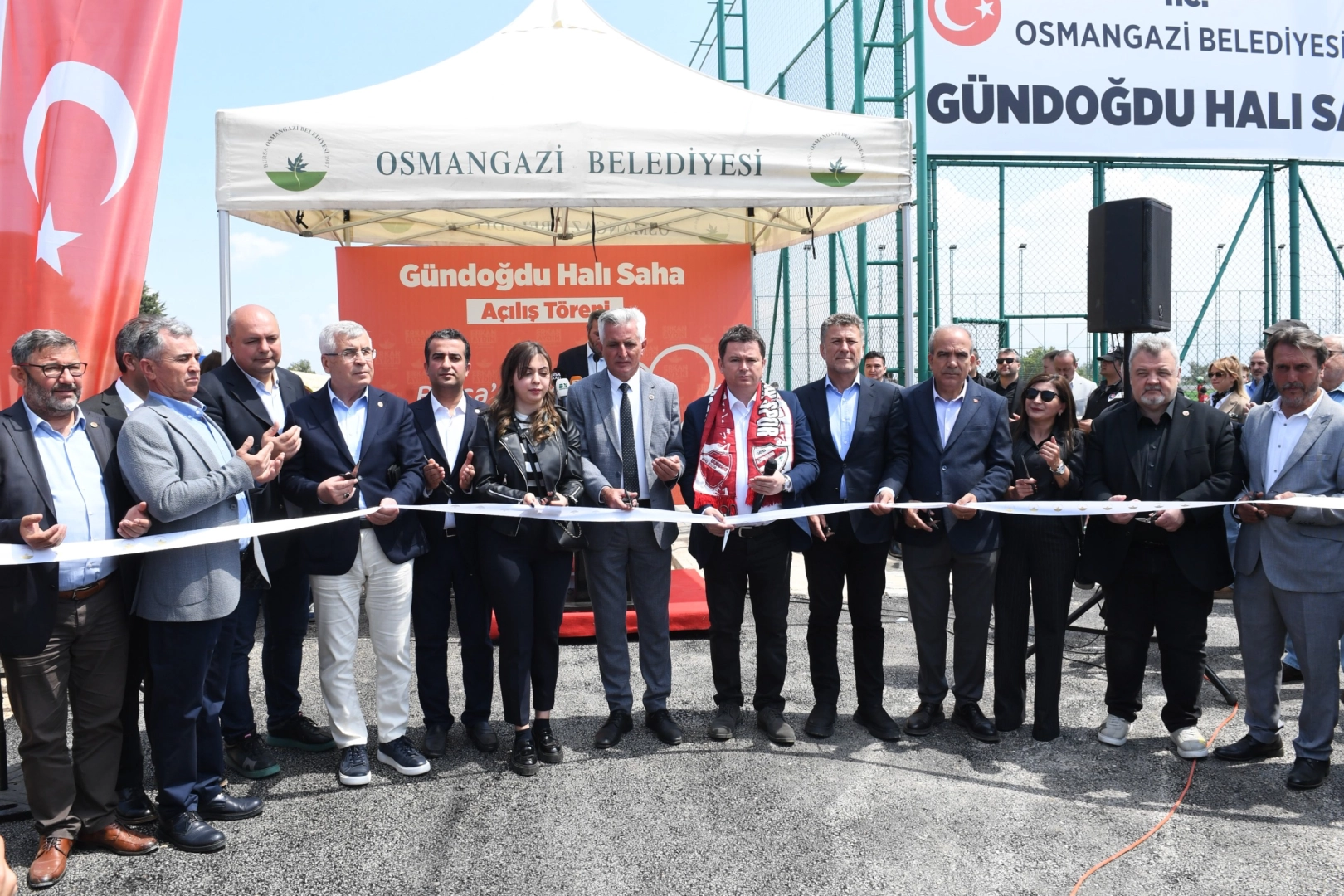 Osmangazi Belediye Başkanı Erkan Aydın’ın ev sahipliğinde düzenlenen Gündoğdu Futbol Sahası’nın açılış törenine CHP Bursa Milletvekili Orhan Sarıbal, Büyükşehir Belediye Başkan Vekili Sinan Nergiz, CHP Osmangazi İlçe Başkanı Raşit Gürbüz, meclis üyeleri, belediye başkan yardımcıları, muhtarlar, sporcular ve vatandaşlar katıldı. Dualarla yapılan açılışın ardından Gündoğdu Mahalle Muhtarı Savaş Özkan, Osmangazi Belediye Başkanı Erkan Aydın’a üzerinde isminin yazılı olduğu Gündoğdu Spor forması hediye etti. Açılışın ardından futbol sahasına gezen Başkan Aydın ve protokol üyeleri penaltı atışı gerçekleştirdi. Başkan Aydın, Gündoğdu Spor Kulübü’nün düzenlediği Başkanlık Kupası turnuvasında birinci olan takıma şampiyonluk kupasını verdi.