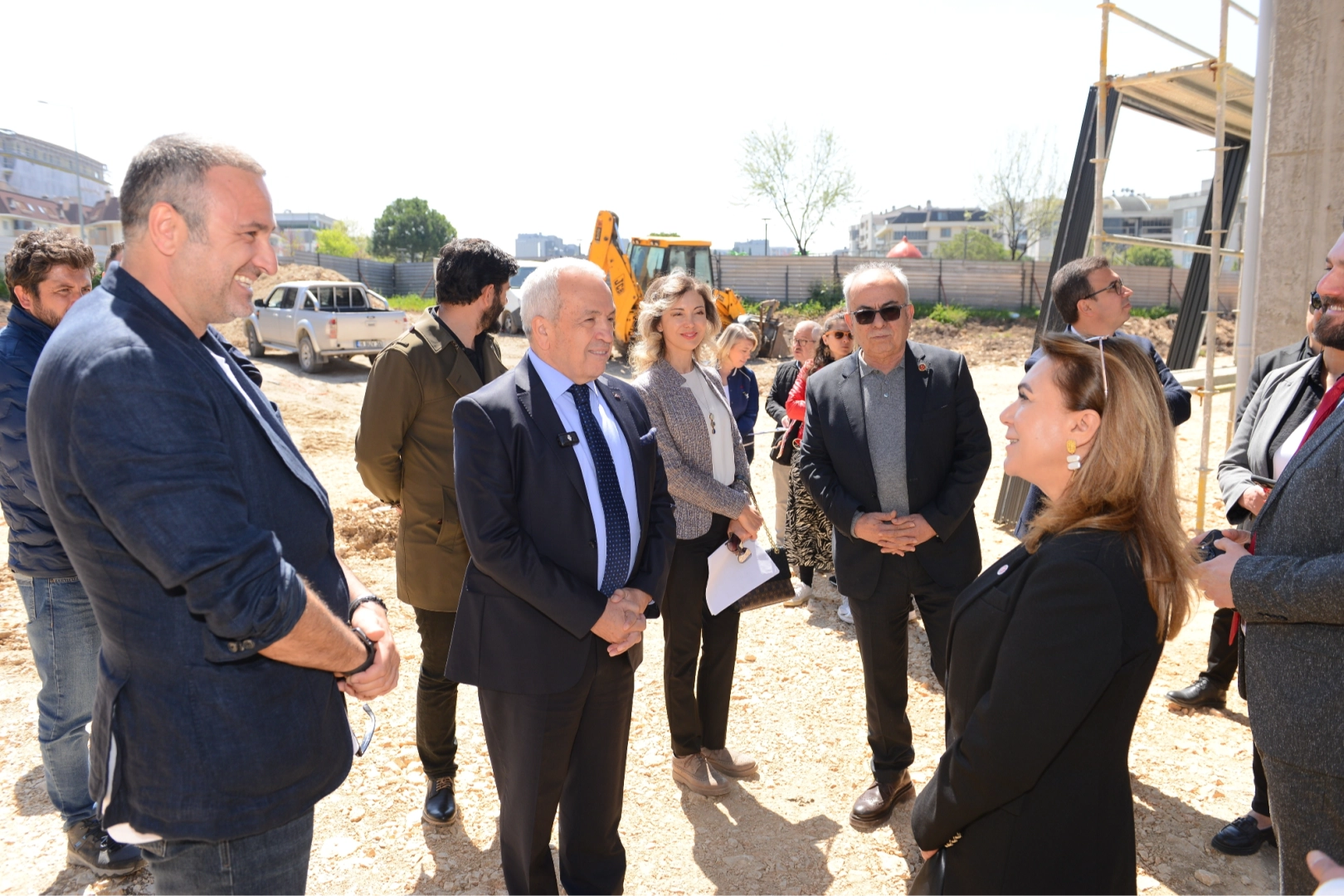 Yapımı devam eden pazar alanını ziyaret eden Nilüfer Belediye Başkanı Şadi Özdemir, Belediye Başkan Yardımcıları ve Balat Mahalle Muhtarı Serpil Özuyguz, inşaat çalışmalarını yerinde inceledi.