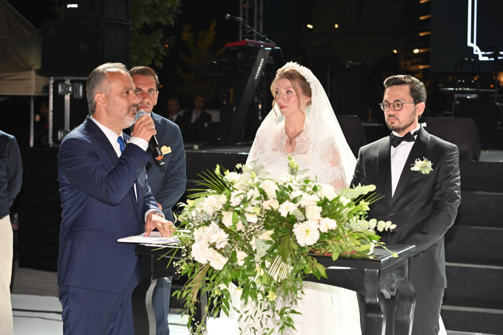 Bursa Büyükşehir Belediye Başkanı Alinur Aktaş’ın oğlu Safa Hilmi Aktaş, Bedriye Taç ile Gökmen Uzay Havacılık Eğitim Merkezi (GUHEM)’de gerçekleşen görkemli törenle hayatlarını birleştirdi. Siyaset ve iş dünyasından önemli isimlerin yer aldığı törene 4 bin 500 kişi katıldı. Muradiye Cami İmam Hatibi Lütfi Taşçı’nın okuduğu Kur’an-ı Kerim tilaveti sonrası nikah törenine geçildi. Genç çiftin nikahını ise Bursa Büyükşehir Belediye Başkanı Alinur Aktaş kıydı. Yıllardır görevi gereği binlerce nikah kıyan Başkan Aktaş, bu kez oğluna nikah kıymanın mutluluğunu yaşadı.