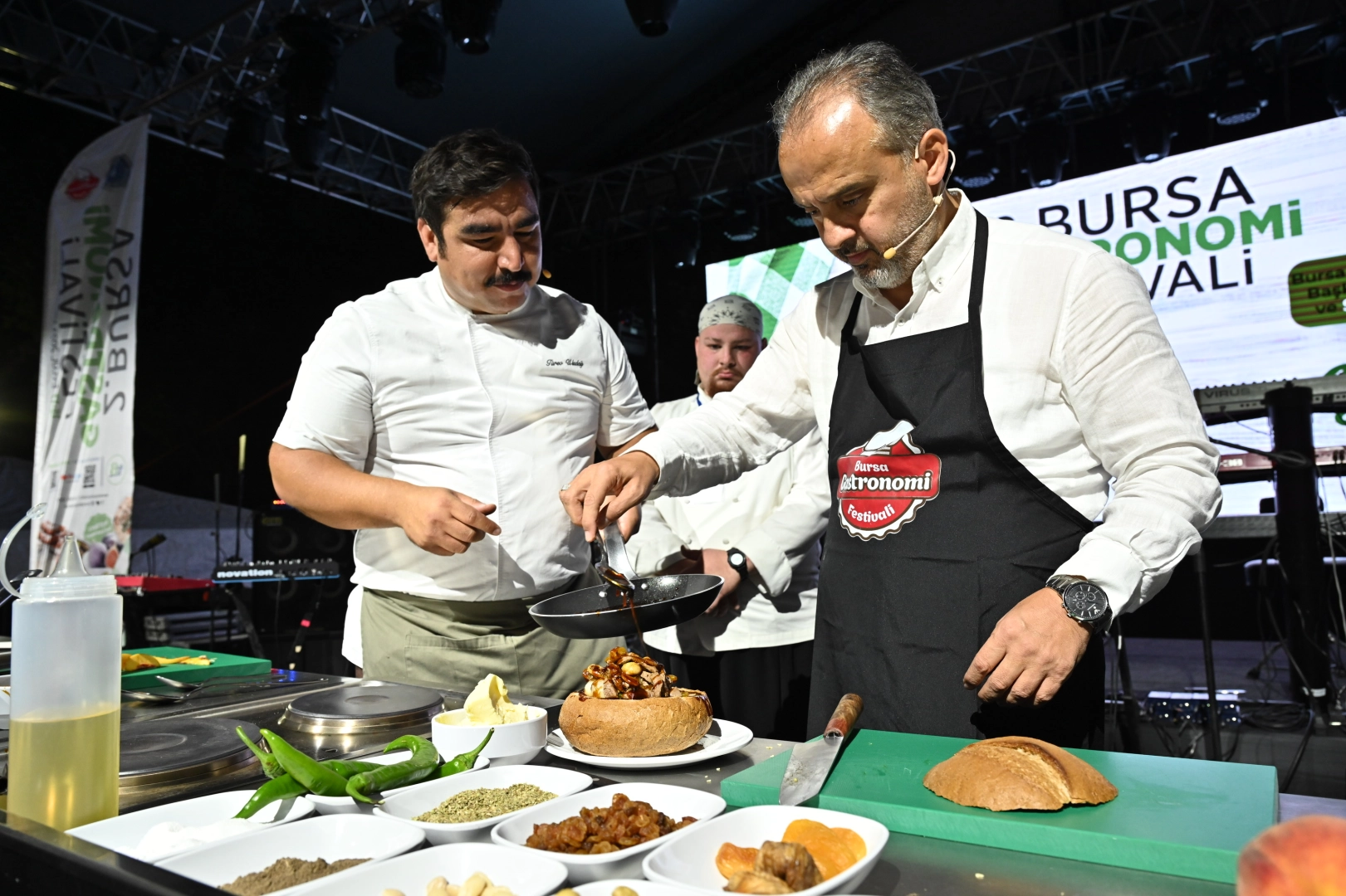 Bursa Büyükşehir Belediyesi’nin 'Yeşil Bursa, Yeşil Gastronomi’ temasıyla bu yıl ikincisini düzenlendiği 2. Bursa Gastronomi Festivali’nde başta Bursa olmak üzere, Türk, Balkan ve Kafkas mutfağının eşsiz lezzetleriyle buluşan Bursalılar, gece de Mustafa Ceceli konseri ile coştu. Etkinlik kapsamında ünlü şef Türev Uludağ ile mutfağa giren Büyükşehir Belediye Başkanı Alinur Aktaş, hazırladığı yemeği, alandaki vatandaşlara kendi elleriyle ikram etti.