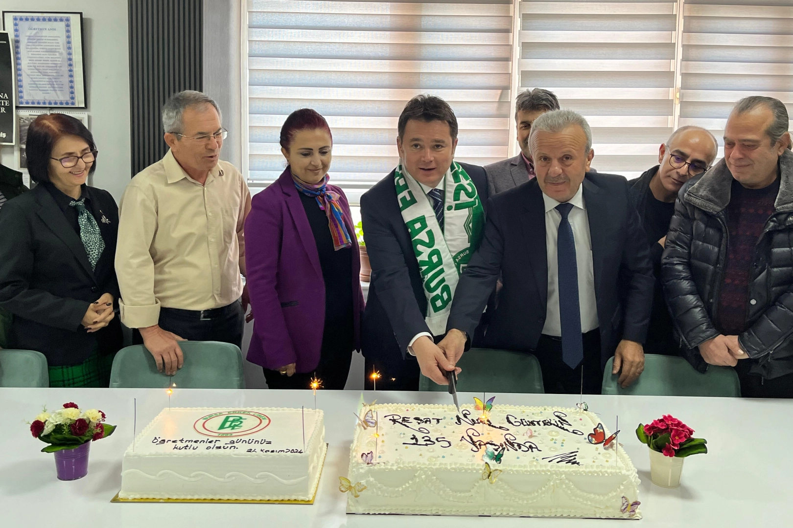 Okul ziyareti esnasında Müdür Boztepe’den Bursa Erkek Lisesi’nin tarihçesi hakkında bilgiler alan Başkan Aydın, geçmiş yıllarda Bursa Erkek Lisesi’nde öğretmenlik yapan ‘Çalıkuşu’ romanının yazarı Reşat Nuri Güntekin’in 135. doğum gününü de öğretmenlerle birlikte pasta keserek kutladı. Bursa Erkek Lisesi’nin, Bursa’nın tarihinde, kent kimliğinde önemli bir yeri olduğunu dile getiren Başkan Aydın, “Nice değerli isim burada yetişmiş, eğitim almış. Babamın okul yıllarının izini sürerken, merakla ve büyük bir hayretle tarihçesine hayran kalmıştım. Reşat Nuri Güntekin öğretmenlik yıllarında ‘Çalıkuşu’ romanını da burada kaleme almıştı. Bugünkü 24 Kasım Öğretmenler Günü ziyaretimiz aynı zamanda Reşat Nuri Güntekin’in de 135. doğum gününe denk geldi. Öğretmenlerimizle birlikte kutladık. Başta Bursa Erkek Lisesi Okul Müdürü Şahin Boztepe’ye ve değerli eğitimci arkadaşlara misafirperverlikleri için teşekkür ederim” dedi.
