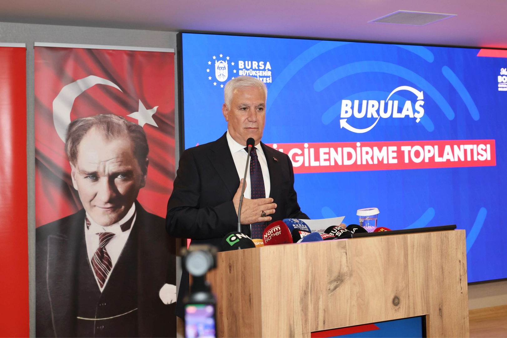 Bursa Büyükşehir Belediye Başkanı Mustafa Bozbey, BURULAŞ ile Demiryol-İş Sendikası arasında devam eden toplu iş sözleşmesi görüşmeleriyle ilgili kamuoyunda oluşan bilgi kirliliğini önlemek ve doğru bilgileri paylaşmak amacıyla önemli açıklamalarda bulundu. Dün itibariyle sendika tarafından greve çıkılacağı yönünde karar alındığını hatırlatan Başkan Bozbey, konuyu şeffaflık ilkesi gereği Bursa kamuoyunun da bilmesini istediklerini vurguladı. Çalışanların çok daha iyi şartlara kavuşmasının, her birinin yaşam standardının en iyi seviyede olmasının en büyük arzuları olduğunu belirten Başkan Bozbey, “Şunun da bilinmesini isterim. Çalışanlarımıza en iyi koşulları sağlamaya çalışırken, belediyemizin mali disiplini ve sürdürülebilirliği de bizim için vazgeçilmezdir. Her zaman söylüyoruz. Şeffafız, hesap verebilir bir anlayışa sahibiz. Şeffaf olmak demek, hiç çekinmeden her şeyi paylaşmak, kamuoyunun bilgisine sunmaktır. Başlangıçta sendika yönetimi yüzde 75 civarındaki bir artış oranıyla karşımıza geldi. Daha sonra görüşmelerde yüzde 54’e düştü. En son yüzde 47’de ısrar ederek grev kararını açıkladı. Bu taleplerin mevcut şartlarda gerçekçi talepler olmadığını ifade ediyoruz. Bu artış hayata geçirilirse, sadece BursaRay’da maliyet üzerinden hesaplanırsa bilet fiyatının yaklaşık 56 TL olması gerekir. Uzun hatlarda da yaklaşık 64 TL olması lazım” diye konuştu.