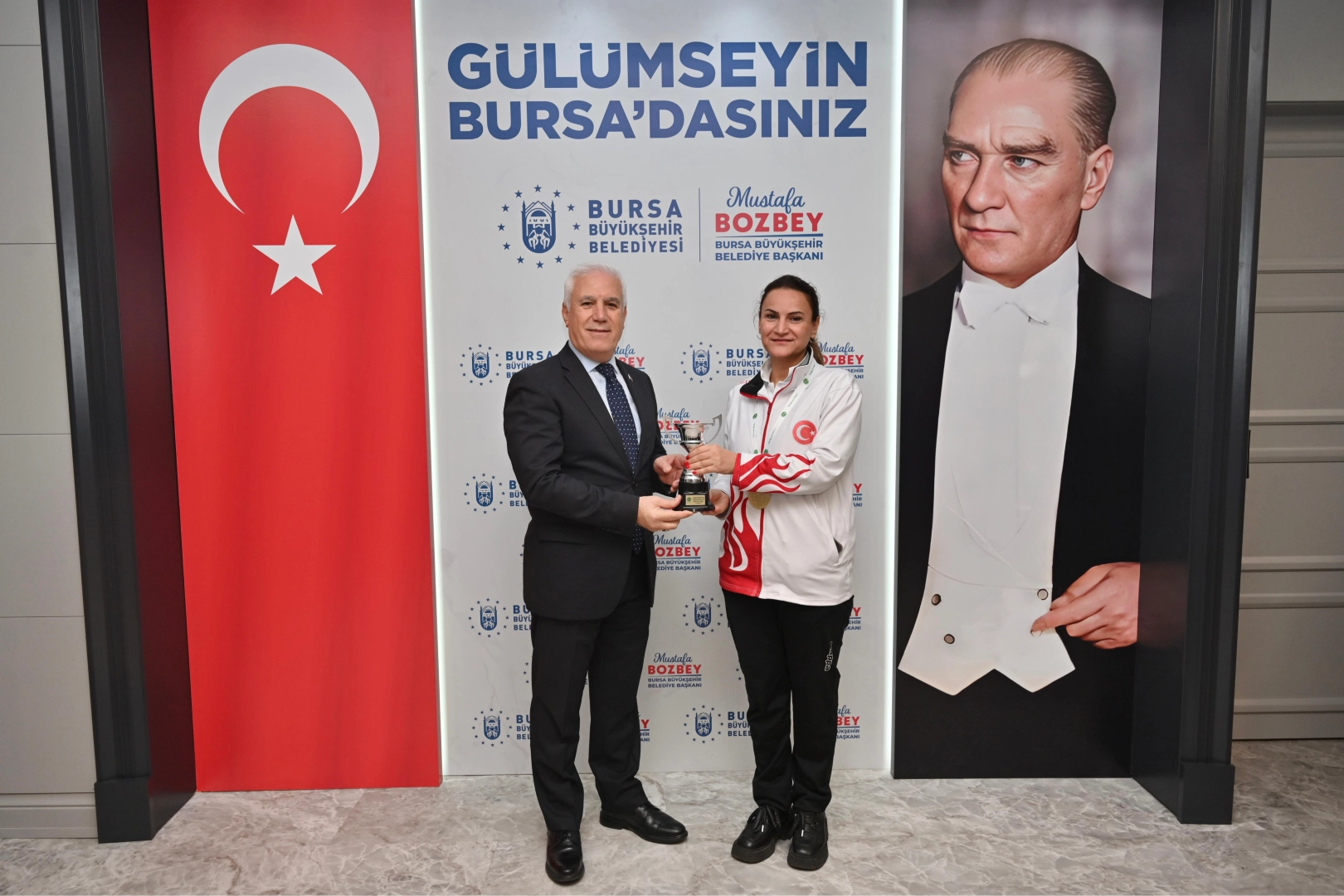 Bursa Büyükşehir Belediye Başkanı Mustafa Bozbey, dünya şampiyonluğu yaşayan Dilek Yavaş’ı makamında ağırlayarak tebrik etti. Bursa’nın bir spor kenti olması için tüm branşları desteklediklerini söyleyen Başkan Bozbey, sporun gelişmesi ve insanların spora teşvik edilmesi amacıyla çalışmalarını sürdürdüklerini anlattı. Briçin de önemli bir spor olduğunu belirten Başkan Bozbey, tüm spor dallarına olduğu gibi briçe de gerekli desteği vermeye devam edeceklerini dile getirdi.