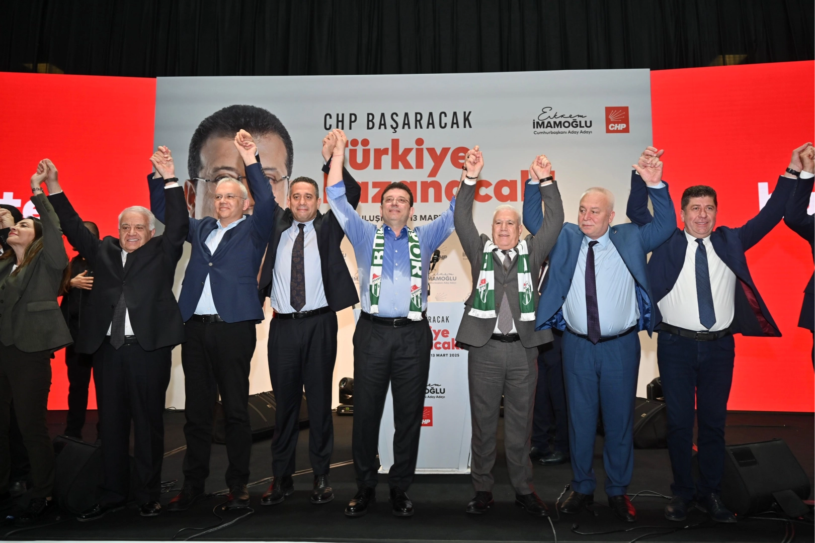 Cumhurbaşkanlığı yarışı için CHP’nin ön seçim yarışına katılan Türkiye Belediyeler Birliği (TBB) ve İstanbul Büyükşehir Belediye (İBB) Başkanı Ekrem İmamoğlu’nun Cengiz Göllü Voleybol Salonu’nda düzenlenen ‘Bursa Buluşması’ programına binlerce vatandaş katıldı. Hep birlikte tarihe tanıklık ettiklerini ve Bursa olarak Türkiye’ye güçlü bir mesaj verdiklerini belirten Başkan Mustafa Bozbey, oluşan tablonun Türkiye’nin demokrasiye, adalete ve eşitliğe olan özleminin en net göstergesi olduğunu söyledi. “Hep birlikte daha güzel, daha adil, daha eşit bir Türkiye’yi inşa edeceğiz” diyen Başkan Bozbey, “Hepimizin tek bir görevi var: Cumhuriyetimizi yeniden aydınlık günlere kavuşturmak. Demokrasiyi ve adaleti yeniden egemen kılmak. Ülkemizin kurucusu, Ulu Önderimiz Gazi Mustafa Kemal Atatürk’ün emanetine sahip çıkmak” dedi.