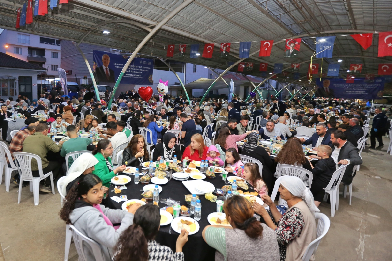 Bursa Büyükşehir Belediyesi tarafından 17 ilçede düzenlenen iftar programları İznik ile devam etti. İznik Kapalı Pazar Alanı’nda gerçekleştirilen iftar programına, Büyükşehir Belediye Başkanı Mustafa Bozbey’in yanı sıra CHP İlçe Başkanı Sadullah Eşiyok, Büyükşehir Belediyesi bürokratları, muhtarlar, belediye meclis üyeleri ve vatandaşlar katıldı. İftar öncesinde düzenlenen Karagöz gölge oyunu gösterisi, katılımcılara keyifli anlar yaşatırken, akşam ezanıyla birlikte vatandaşlar hep birlikte oruçlarını açtı.