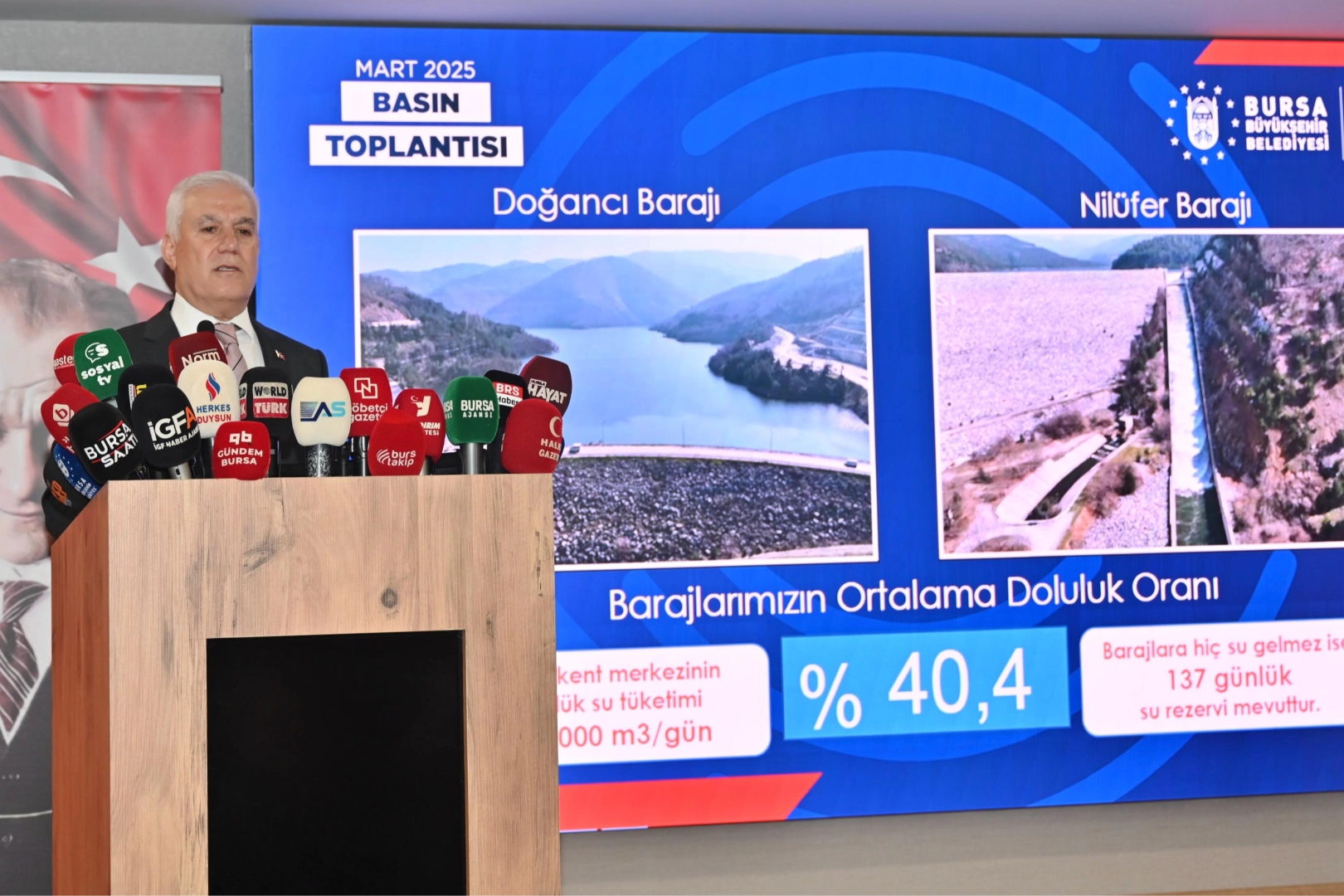 “Bursa’da günlük olarak 450 bin metreküp su ihtiyacı var” Çevreyi ve toplum sağlığını koruma sorumluluğuyla 2024 yılında 132 atıksu arıtma tesisi ve 109 terfi merkezi ile 147 milyon metreküpten fazla atıksuyu arıtarak alıcı ortamlara mevzuata uygun şekilde deşarj ettiklerini ifade eden Başkan Bozbey, 717 bin ton fazla aktif çamurun da yakılarak bertaraf edildiğini anlattı. 2024 yılı TÜİK verilerine göre Bursa'da yaşayan nüfusun yüzde 88,8’inin ileri biyolojik arıtma tesisleriyle doğrudan hizmet aldığını söyleyen Başkan Bozbey, “Bugün Bursa’da her 10 kişiden 9’unun atıksuyu, çevreyi koruyan modern yöntemlerle arıtılmaktadır. Bursamızın su ihtiyacı planlamaya göre yıllık bazda yüzde 85 oranında Doğancı ve Nilüfer barajlarından, yüzde 15 oranında ise Uludağ pınar kaynaklarından karşılanacak şekilde yapılmıştı. Ancak geldiğimiz durumda kentimizin su ihtiyacının yüzde 55’i barajlarımızdan, yüzde 15’i Uludağ’daki doğal pınar kaynaklarından, yüzde 30’u da 155 adet derin yeraltı kuyusundan karşılanmaktadır. Bursa’da günlük olarak 450 bin metreküp su ihtiyacı var. Bu oran yaz aylarında ise 550 bin metreküpe kadar çıkıyor. BUSKİ olarak Bursa il merkezinde yüzde 19,25’lik kayıp-kaçak oranımız var. Ancak İnegöl’de yüzde 55 civarında kayıp-kaçak oranı var. Bu yüzden içme suyu hatlarının tamamını yeniliyoruz” dedi.