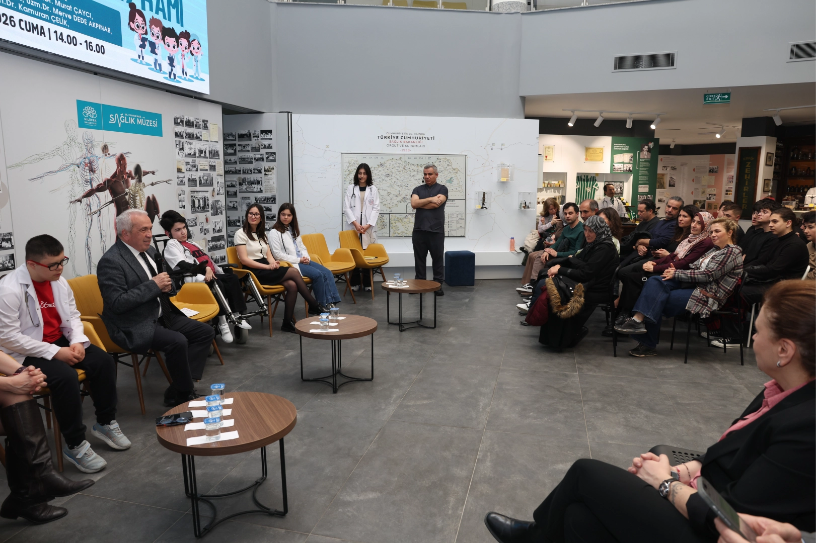 Nilüfer Belediyesi Ceyhun İrgil Sağlık Müzesi, 14 Mart Tıp Bayramı kapsamında düzenlenen etkinliğe ev sahipliği yaptı. “Çocukların Gözünden 14 Mart Tıp Bayramı” etkinliğine Nilüfer Belediye Başkanı Şadi Özdemir, Nilüfer Belediye Başkan Yardımcısı Bukle Erman, hekimler ve çocuklar katıldı. Etkinlikte çocuklar, hekimlere “asistan” olarak eşlik etti. Merak ettikleri soruları soran çocuklar, aynı zamanda kendi yaşamlarından kesitler paylaştı. Etkinlik kapsamında; Prof. Dr. Yeşim Uncu, Prof. Dr. Murat Çaycı, Doç. Dr. Selin Aktürk Esen, Uzm. Dr. Merve Dede Akpınar ve Uzm. Dr. Kamuran Çelik, hem küçük asistanların hem de izleyici öğrencilerin sorularını yanıtladı.