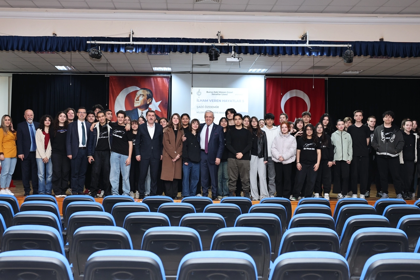 Nilüfer Belediye Başkanı Şadi Özdemir, Zeki Müren Güzel Sanatlar Lisesi’nde düzenlenen “İlham Veren Hayatlar 5” başlıklı söyleşiye katıldı. Söyleşi öncesinde okul öğrencilerinden oluşan orkestra özel bir konser verdi. Yeteneklerini sergileyen öğrenciler, izleyenlerden alkışları topladı. Ardından gerçekleştirilen söyleşiye genç sanatçı adayları yoğun ilgi gösterdi. Başkan Şadi Özdemir, kendi yaşamından kesitler sunarak, gençlerin hayallerine ulaşma yolunda onlara ilham vermeye çalıştı. Öğrencilere karşılaştığı zorlukları, bu zorlukların üstesinden nasıl geldiğini anlatan Başkan Şadi Özdemir, başarıya ulaşmak için sahip olması gereken motivasyonu aktardı.