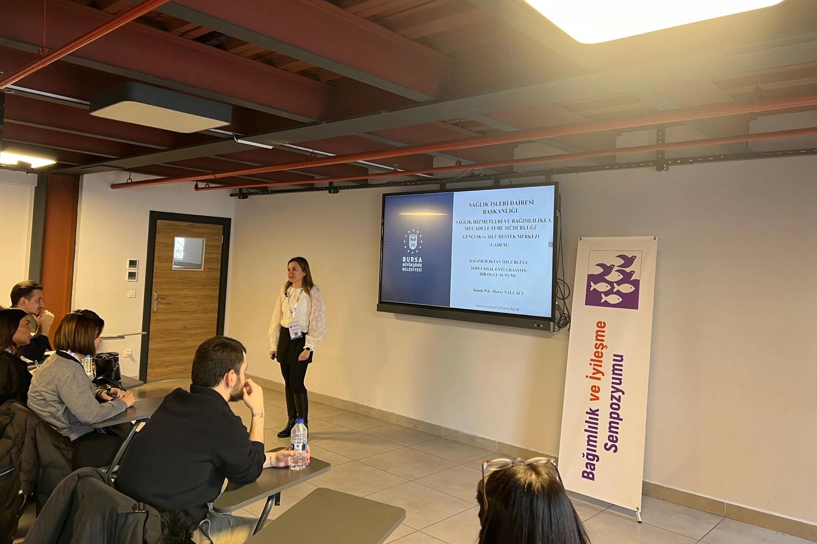 Bursa Büyükşehir Belediyesi Sağlık İşleri Dairesi Başkanlığı'na bağlı Sağlık Hizmetleri ve Bağımlılıkla Mücadele Şube Müdürlüğü de sempozyumda yerini aldı. Bağımlılıkla mücadeledeki deneyimlerini ve çalışmalarını katılımcılara aktaran Bursa Büyükşehir Belediyesi yetkilileri, ‘Sahadan Bakış’ panelinde ‘Bağımlılıktan özgürlüğe, toplumsal entegrasyon: Bir olgu’ sunumu gerçekleştirdi. GADEM’in bağımlılıkla mücadele çalışmalarını da anlatan yetkililer, Bursa Büyükşehir Belediyesi’nin katkısıyla yerel yönetimlerin bağımlılıkla mücadeleye dair geliştirdiği yöntemler ve toplumsal entegrasyon süreçleri hakkında bilgi verdi.