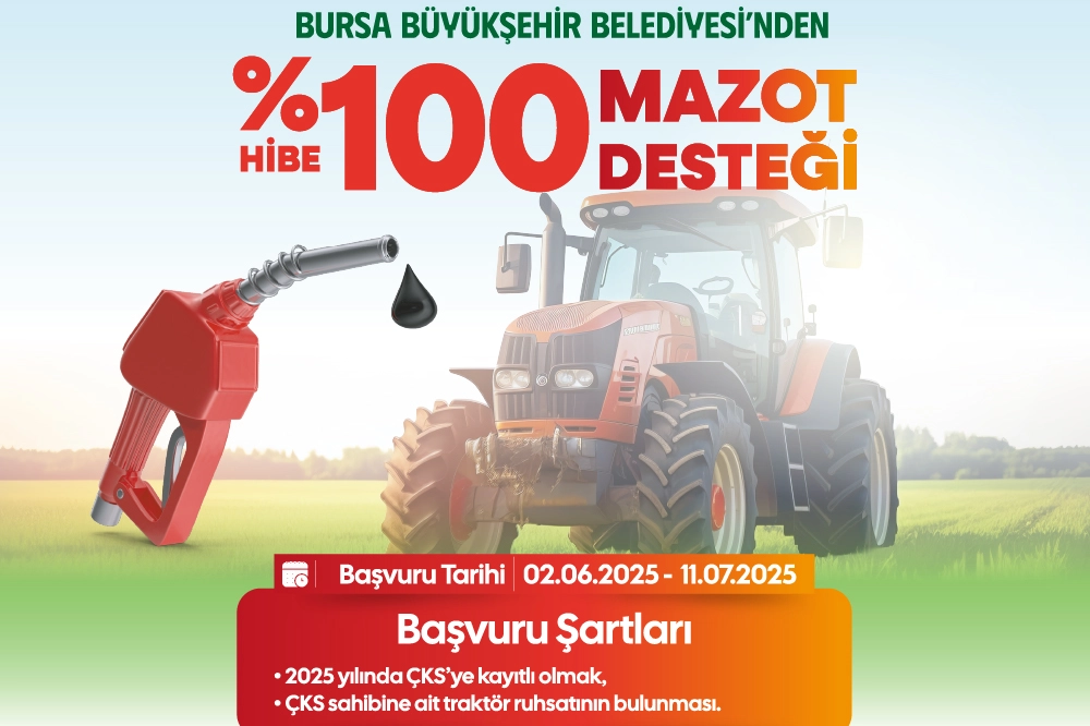 Bursa’da çiftçilerin daha fazla üretmesi ve ürettiğinin karşılığını alabilmesi için kırsal kalkınmaya yönelik birçok projeyi hayata geçiren Büyükşehir Belediyesi, üreticilerin girdi maliyetlerinin azaltılması ve daha fazla gelir elde edebilmesi amacıyla ‘Mazot Desteği Projesi’ni de hayata geçirdi. Damla Sulama Boru Üretim Tesisi’nde yüzde 100 geri dönüşüm malzemelerinden üretilen damla sulama borularını üreticilerle buluşturan, Sıvı Gübre Tesisi'nde üretilen sıvı gübreleri çiftçilere teslim eden Büyükşehir Belediyesi, 2 Haziran Pazartesi günü itibariyle mazotla ilgili talepleri de almaya başladı. Başvurular, 11 Temmuz 2025 tarihine kadar www.bursa.bel.tr/kirsaldestek sayfasından ya da bağlı olunan ziraat odasından online olarak yapılacak.