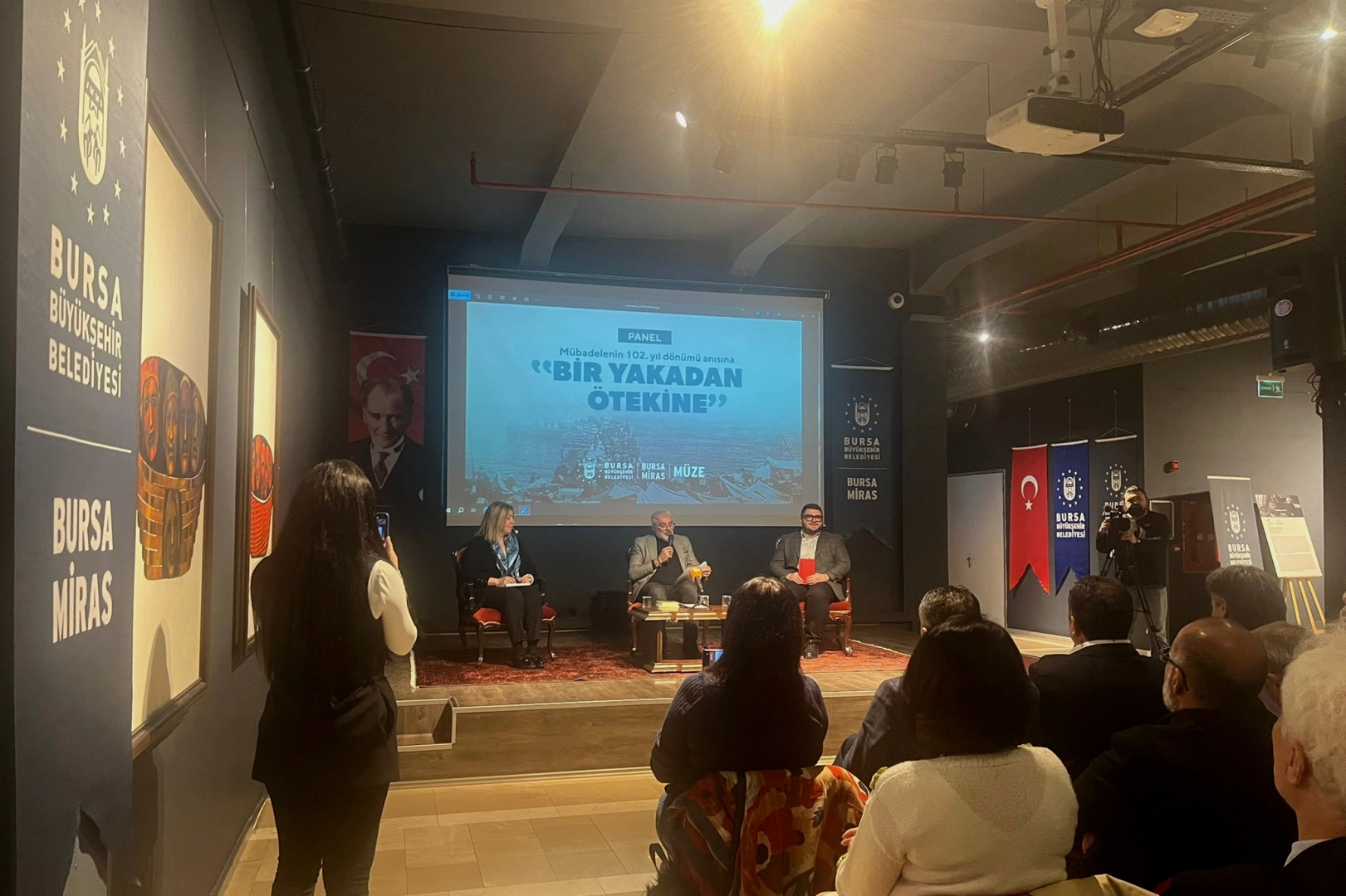 Bursa Büyükşehir Belediyesi Kent Tarihi ve Tanıtımı Dairesi Başkanlığı tarafından Merinos Bursa Müze Etkinlik alanında ‘Bir Yakadan Ötekine’ paneli düzenlendi. Mübadelenin 102. yıl dönümü anısına hazırlanan programa, Bursalılar yoğun ilgi gösterdi. Kent Tarihi ve Tanıtımı Dairesi Başkanı Güney Özkılınç’ın moderatörlüğünü üstlendiği panele, Düzce Üniversitesi Fen Edebiyat Fakültesi’nden Doç. Dr. İsmail Yaşayanlar ve Ankara Üniversitesi Dil Tarih Coğrafya Fakültesi’nden Dr. Maria Ntisli konuşmacı olarak katıldı. Mübadele tarihi ve Bursa üzerine konuşmaların yapıldığı programda, Bursa Göç Tarihi Müzesi koleksiyonunda bulunan 1879 tarihli Tirilye Defteri de ele alındı.