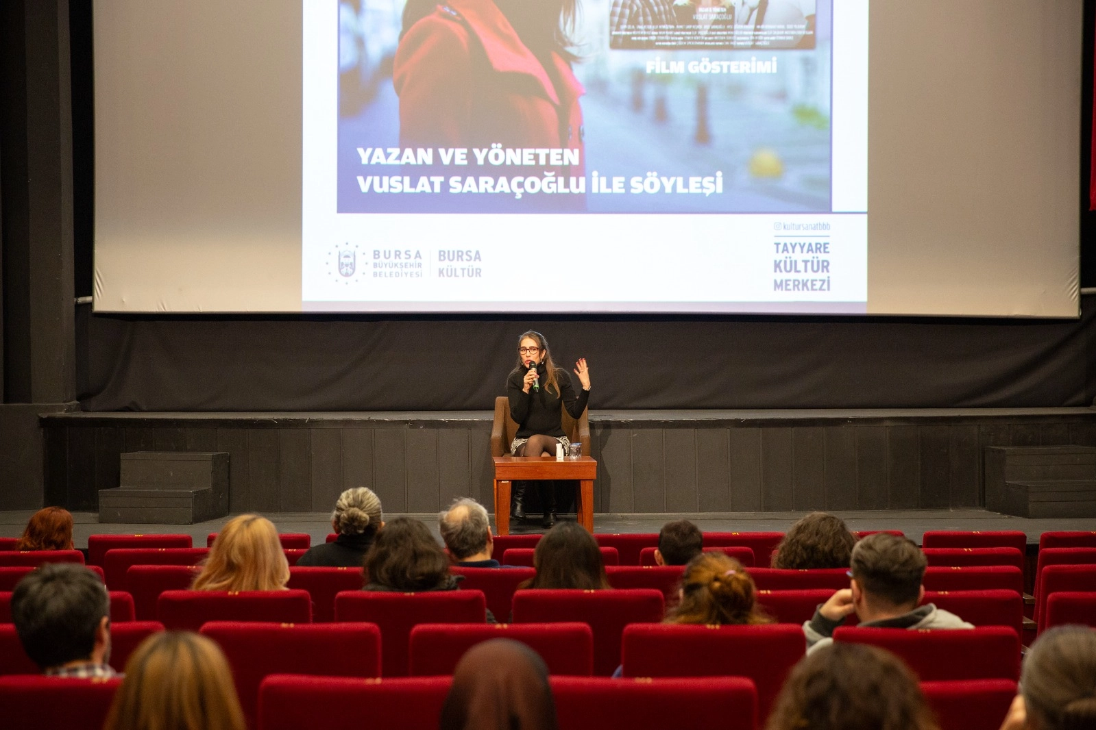 Filmin yazarı ve yönetmeni Vuslat Saraçoğlu, katılımcıların sorularını yanıtlayarak filmin arka planı, karakterleri ve anlatım tarzı hakkında detaylı bilgiler sundu. Filmi oluşturma sürecindeki ilham kaynaklarını ve hedeflerini anlatan Saraçoğlu, filmdeki temaların, mesajların ve karakterlerin gelişimleri üzerine derinlemesine analiz yaptı. Filmden ve Vuslat Saraçoğlu söyleşisinden büyük keyif aldıklarını söyleyen sinemaseverler, bu tür etkinliklerin devam etmesini istedi. Biletler için https://biletinial.com/tr-tr/etkinlikleri/bursa-kultur adresi ziyaret edilebilir.