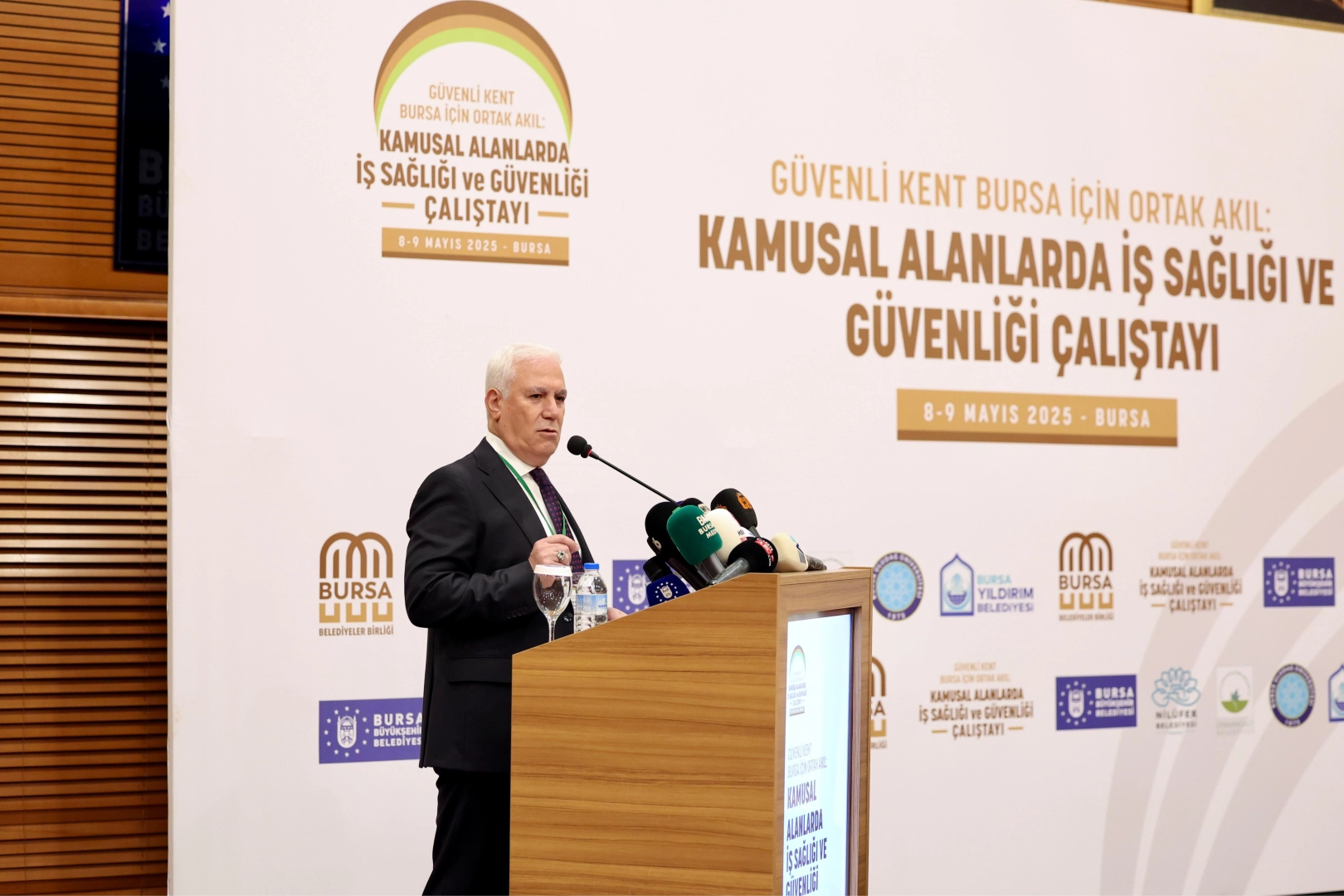 Kamusal alanlardaki iş sağlığı ve iş güvenliği ile belediyeler arasındaki iş birliğini ve kamusal verimliliği artırmak amacıyla Bursa Belediyeler Birliği’nin ev sahipliğinde ve Bursa Büyükşehir Belediyesi’nin katkılarıyla ‘Güvenli Kent Bursa için; Kamusal Alanlarda İş Sağlığı ve Güvenliği Çalıştayı’ düzenlendi. Atatürk Kültür Merkezi Merinos Yerleşkesi’ndeki programa, Marmara Belediyeler Birliği Başkanı ve Bursa Büyükşehir Belediye Başkanı Mustafa Bozbey’in yanı sıra Bursa Vali Yardımcısı Rıza Gençoğlu, Bursa Belediyeler Birliği ve Yıldırım Belediye Başkanı Oktay Yılmaz, kaymakamlar, ilçe belediye başkanları, akademisyenler, kamu kurumu, meslek odası ve sivil toplum kuruluşlarının temsilcileri katıldı. İki gün sürecek olan çalıştayda, 'Kamusal alanlarda risk yönetimi ve güvenlik standartları, İSG eğitim ve farkındalık programları, kamusal alanlarda iş kazaları ve hukuki süreçler, altyapı çalışmaları ve güvenlik yönetimi, yüklenici/hizmet veren kuruluşlarda çalışan güvenliği ve İSG yönetimi, İSG teknolojileri ve dijital çözümler, psikososyal riskler, meslek hastalıkları ve çalışan sağlığı, yangın acil durum yönetimi ve yangın planlaması ile çevresel riskler ve sürdürülebilir İSG politikaları konuları tartışılacak.
