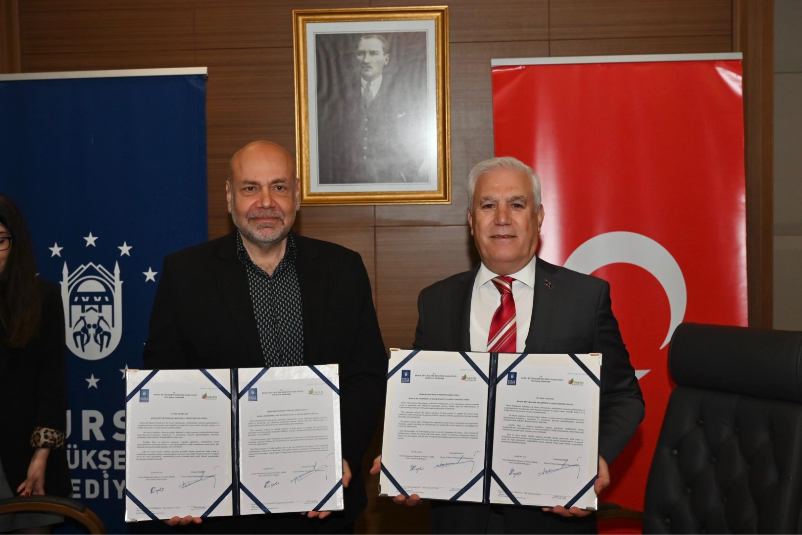 Bursa’nın binlerce yıllık tarihini, eşsiz doğasını ve kültürünü korumak, gelecek taşımak ve turizm potansiyelini güçlendirmek amacıyla çalışmalarını aralıksız sürdüren Büyükşehir Belediyesi, Bursa’yı destinasyon olarak daha sürdürülebilir hale getirmek için Küresel Sürdürülebilir Turizm Konseyi’nin (GSTC) de destinasyonlar konusunda akredite ettiği ‘Green Destinations’ ile iş birliği protokolü imzaladı. Büyükşehir Belediyesi Hizmet Binası’ndaki törene, Bursa Büyükşehir Belediye Başkanı Mustafa Bozbey, Green Destinations Afrika, Ortadoğu ve Güney Avrupa Bölge Direktörü Iyad Kayali ile Türkiye Direktörü Tansu Karabulut ve Dış İlişkiler Dairesi Başkanı Pınar Işıkyıldız katıldı.