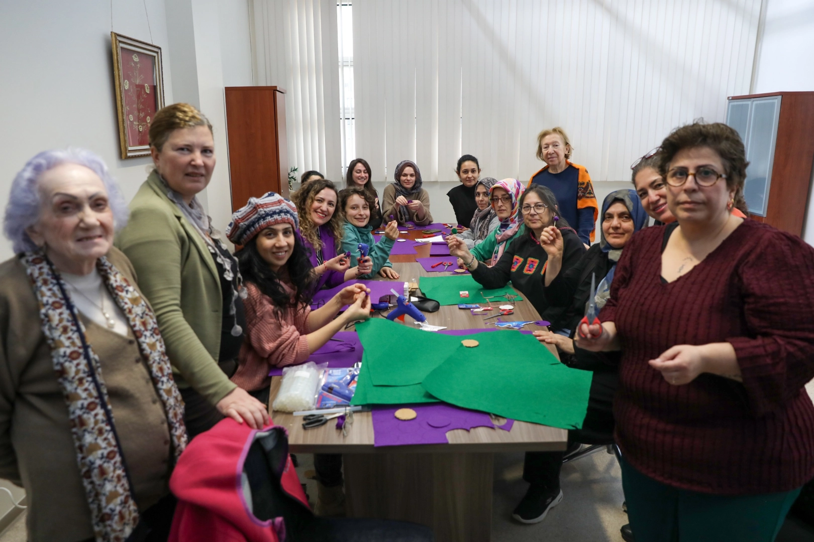 Bursa Kent Konseyi Kadın Meclisi’nin düzenlediği atölye çalışmasında, keçe kumaşlar, renkli iplikler, düğmeler ve süsleme malzemeleri kullanılarak birbirinden renkli ürünler hazırlandı. Kadınların dayanışma ve ortak üretim gücünü bir kez daha ortaya koyan ürünler, 8 Mart Pazar günü yapılacak yürüyüşte kullanılacak.