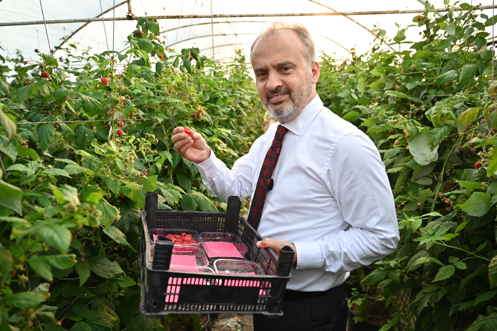 Bursa’da kırsal kalkınmanın sağlanması amacıyla fide-fidan temininden kaliteli üretimin sağlanmasına, ekipman desteğinden ürünlerin satış ve pazarlamasına kadar her alanda çiftçilere katkı sunan Büyükşehir Belediyesi’nin destekleriyle tarımda verimlilik giderek artıyor. Kırsal Hizmetler Dairesi Başkanlığı koordinasyonunda, Tarım Peyzaj A.Ş, Bursa İli Hayvancılığı Geliştirme Birliği (HAGEL) ve BUSKİ marifetiyle 17 ilçenin kırsal mahallelerinde yıl boyunca üretime değer katan adımlar atılırken, Tarım Peyzaj A.Ş. destekleriyle kurulan meyve bahçelerinde hasat bereketli geçiyor. Bursa Büyükşehir Belediye Başkanı Alinur Aktaş, beraberindeki Orhangazi Belediye Başkanı Bekir Aydın ile birlikte Tarım Peyzaj A.Ş’den 2020 yılında 1.950, 2021 yılında 1080 yaban mersini fidesini hibe destekli alan Sabri Bozkurt’un Orhangazi’de kurduğu bahçeleri gezdi. Bozkurt’un yine Tarım Peyzaj A.Ş’den aldığı 7 bin adet ahududu fidesiyle kurduğu bahçedeki hasada katılan Başkan Aktaş, bahçe sahibi Bozkurt ve çalışanlarla sohbet etti.