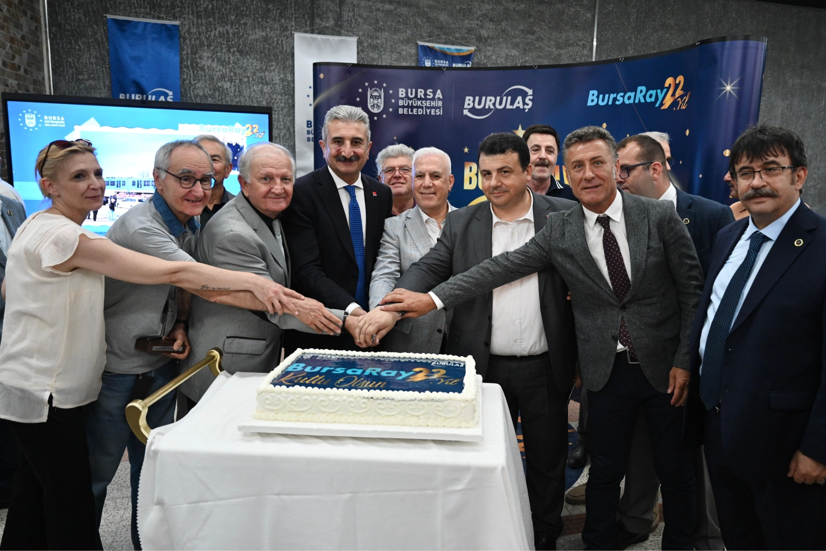 Bursalıları sabahın ilk ışıklarından günün sonuna kadar evine, işine, okuluna ve sevdiklerine kavuşturan Bursa’nın toplu ulaşımda en çok tercih edilen markası BursaRay 22 yaşında. Büyükşehir Belediyesi eski başkanı Erdem Saker zamanında temelleri atılan, Erdoğan Bilenser döneminde faaliyete giren BursaRay’ın 22. yılı yapılan törenle kutlandı. 15 Haziran 2002 saat 17:00’da ilk biletin satıldığı yer olan Merinos İstasyonu’nda yapılan törene, Bursa Büyükşehir Belediye Başkanı Mustafa Bozbey’in yanı sıra Bursa Milletvekilleri Hasan Öztürk ve Orhan Sarıbal, CHP İl Başkanı Nihat Yeşiltaş, BURULAŞ Genel Müdürü Fahrettin Beşli, BURULAŞ’ın ilk genel müdür Fikret Yılmaz, çalışanlar ve vatandaşlar katıldı.