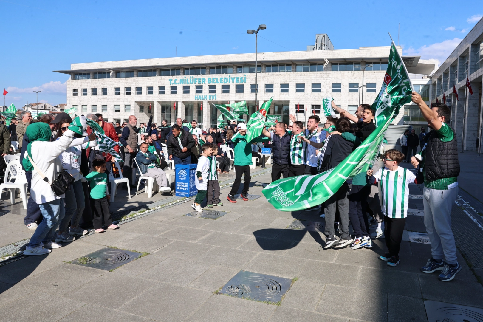 Şampiyonluk maçı öncesinde Nilüfer’in dört bir yanı yeşil beyaz bayraklarla donatıldı. Nilüfer Belediye Başkanı Şadi Özdemir’in Halk Evi’ne ilk bayrağı asmasıyla başlayan süreçte; dış birimler ve ilçedeki birçok mahalleye asılan dev bayraklar, şampiyonluk heyecanını kentin her noktasına taşıdı.