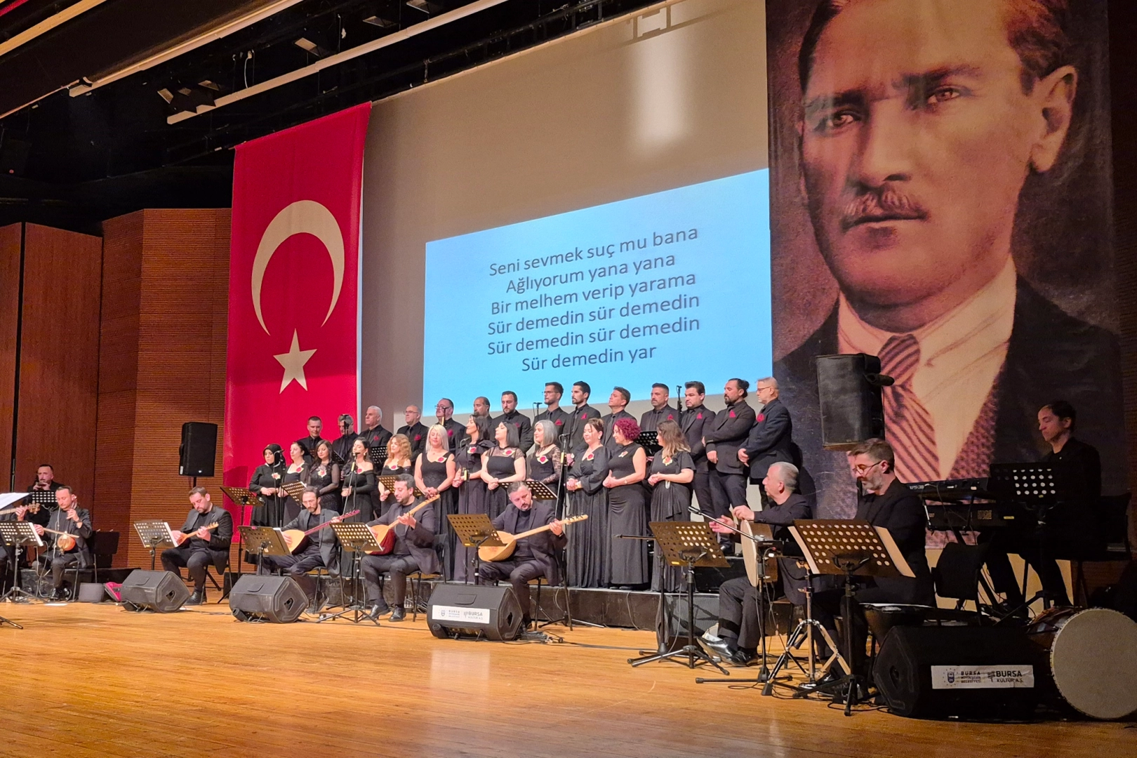 Bursa Büyükşehir Belediyesi Orkestra Şube Müdürlüğü tarafından düzenlenen Türk Halk Müziği konseri, Şef Cemile Kara Polat yönetiminde sanatseverlerin beğenisine sunuldu. Konserde sahne alan sanatçılar, solo ve koro halinde Türk Halk Müziği'nin sevilen eserlerini Bursalılar için seslendirdi.