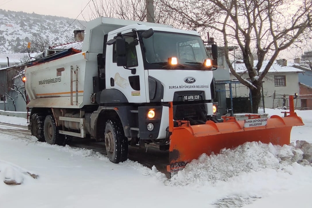 Meteoroloji Genel Müdürlüğü tarafından Bursa Büyükşehir Belediyesi AKOM Merkezi’ne gelen uyarı gereği, Bursa’da sarı uyarı koduyla bu geceden itibaren kuvvetli kar yağışı bekleniyor. Bursa Büyükşehir Belediyesi de yarın etkili olması beklenen kar yağışı ve buzlanma oluşumuna karşı kent merkezinin yanı sıra tüm ilçelerde tedbirlerini aldı. Ulaşım Dairesi Başkanlığı Yol Bakım ve Onarım Şube Müdürlüğü tarafından belirlenen şehir merkezi ve ilçelerde, 94 ana güzergahta ve ilçe mahalle bağlantı yollarında 2 vardiya halinde toplam 101 ekip ve 535 personel, 169 araçla karla mücadele çalışmalarında görev yapıyor. Ayrıca güzergah haricinde olan hastane ve otopark giriş çıkışlarında da gerekli karla mücadele çalışmaları yürütülüyor.