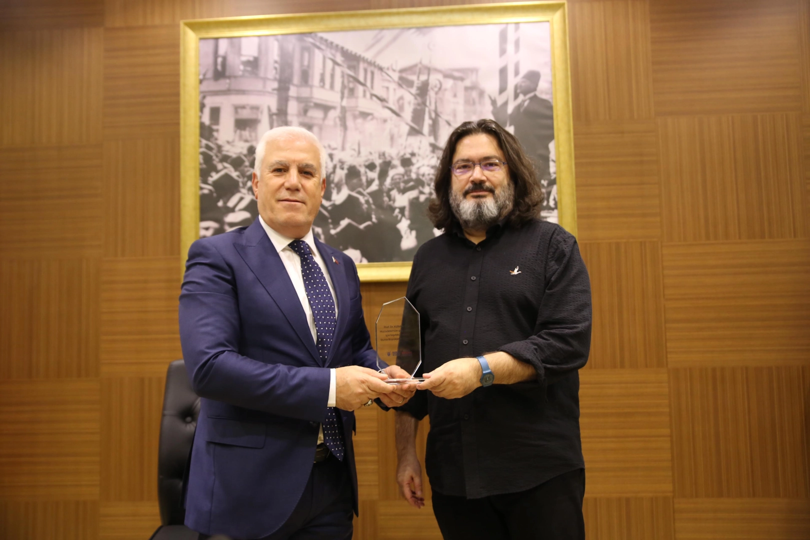 Bursa Büyükşehir Belediye Başkanı Mustafa Bozbey, verdiği bilgilerden dolayı Prof. Dr. Kültegin Ögel’e teşekkür ederek günün anısına plaket takdim etti.