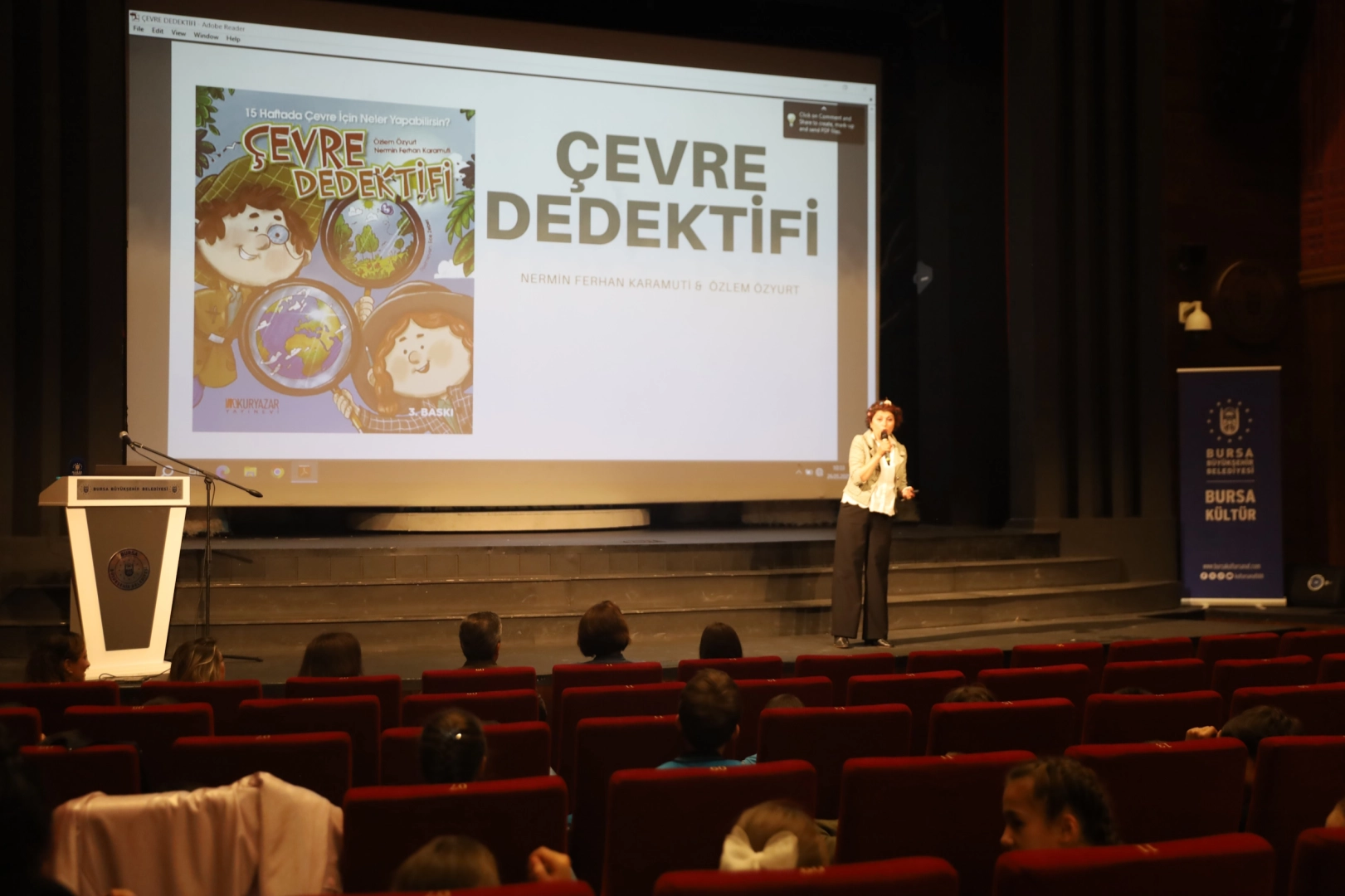 Bursa Büyükşehir Belediyesi Kültür ve Sosyal İşler Dairesi Başkanlığı Kütüphaneler Şube Müdürlüğü, birbirinden kıymetli yerli ve yabancı yazarları Bursalı çocuklarla buluşturmaya devam ediyor. ‘Benim Bir Hikayem Var’ serisinin son konuğu, ‘Çevre Dedektifi’ kitabının yazarı Nermin Ferhan Karamuti oldu. Tayyare Kültür Merkezi’ndeki programda Karamuti, hikayelerinin ilham kaynaklarını çocuklarla paylaştı. Enerji tasarrufu, çevre kirliliği ve doğal kaynakların doğru kullanımı konularında önemli bilgiler veren Karamuti, sürdürülebilir bir gelecek için çevreye karşı daha duyarlı olunması gerektiğini vurguladı. Geri dönüşümün önemine de dikkat çeken Karamuti, çocuklara plastik poşet ve pet şişelerin doğaya verdiği zararlardan bahsetti. Programın sonunda Nermin Ferhan Karamuti, çocuklar için kitabını imzaladı.