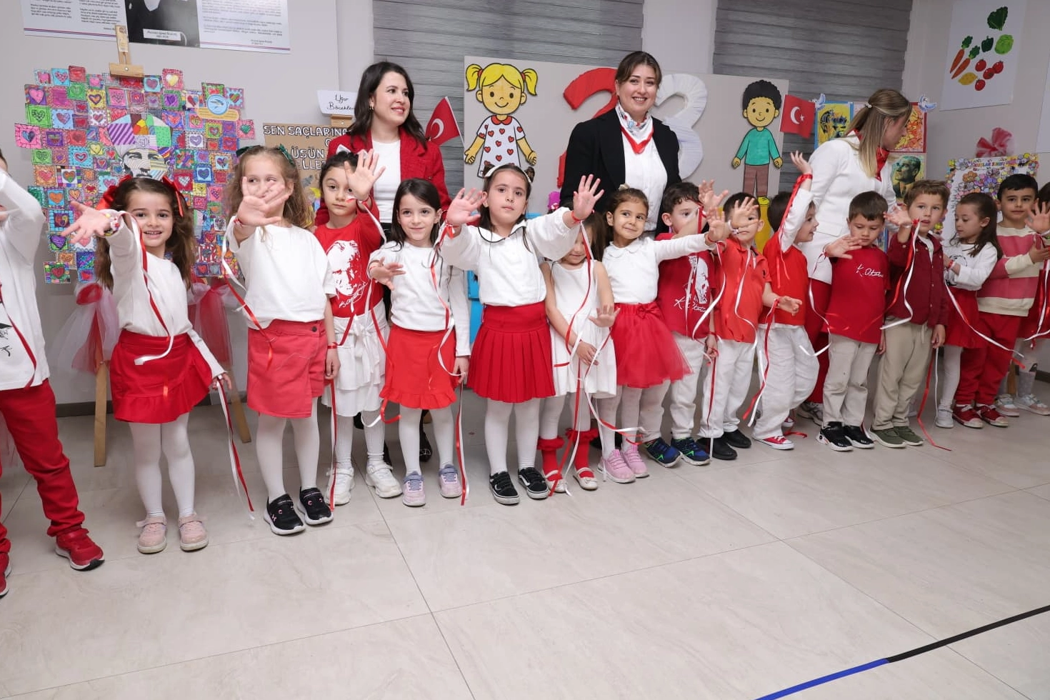 Öğretmenleri eşliğinde sahneye çıkan öğrenciler, hazırladıkları renkli danslar, şiirler ve gösterilerle izleyenlere unutulmaz anlar yaşattı. Ailelerin ve davetlilerin büyük ilgi gösterdiği programda, çocukların sahnedeki heyecanı ise ortama neşe kattı.