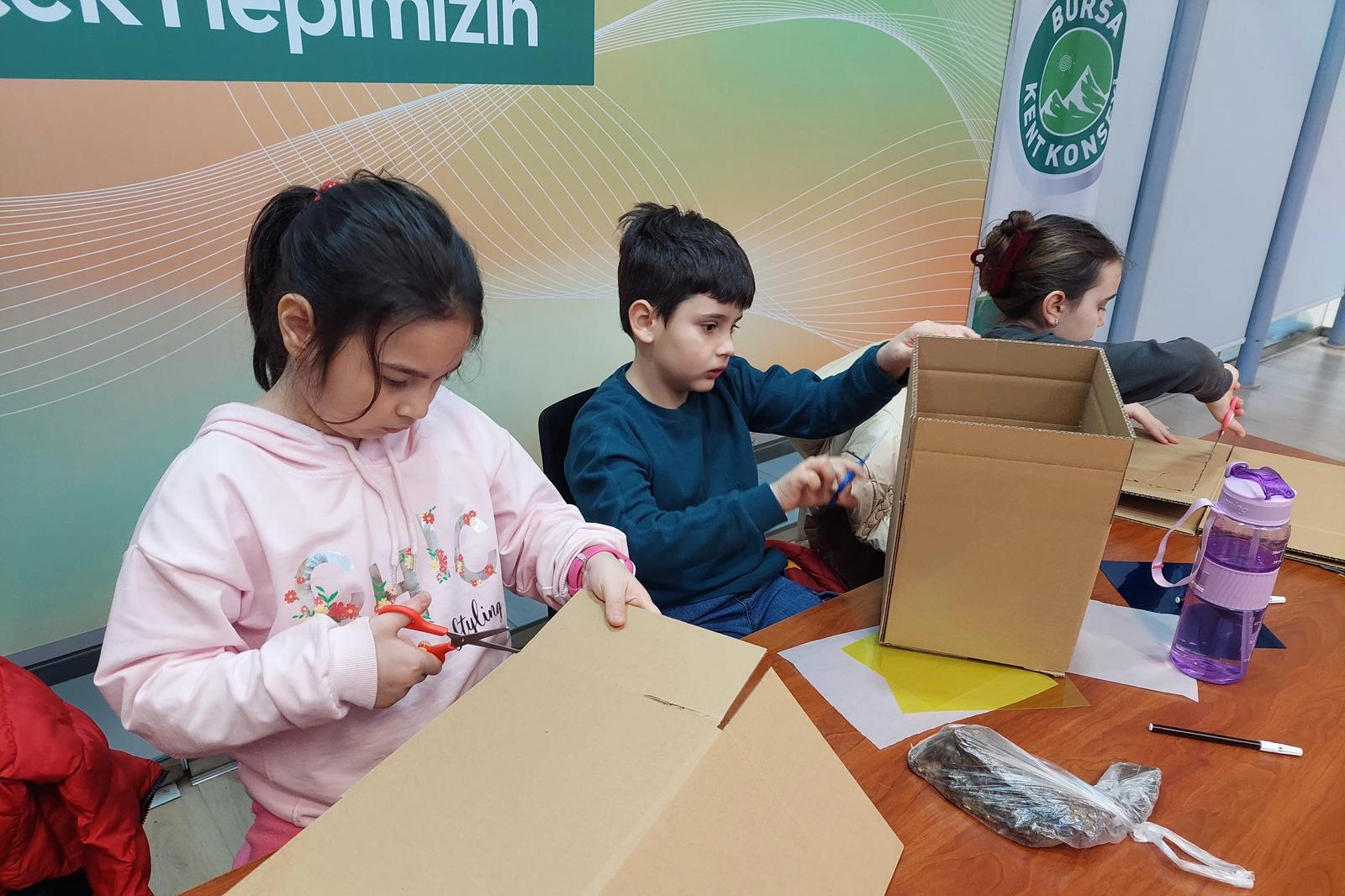 Bursa Kent Konseyi Çınar Camlı Salon’da gerçekleştirilen ‘Işık Avcıları: Pencereli Hayal Evi’ atölyesine katılan 7–14 yaş aralığındaki çocuklar, ‘Bir ev neden aydınlık olur?’ ve ‘Işık içeri nasıl girer?’ sorularına yanıt aradı. Yüksek Mimar Sedef Nur Cankurt Semiz’in eşliğinde yapılan çalışmada, çocuklar ışığın mekân üzerindeki etkisini deneyimleyerek hayal dünyalarındaki evlerini tasarladı. Kendi özgün maketlerini üreten çocuklar, ağaç kabukları, dallar, kozalaklar, yapraklar ve çakıl taşları gibi doğal malzemeleri kullanarak üretimlerini zenginleştirdi. Ayrıca seçtikleri mini figürlerle tasarladıkları mekânların hikâyelerini de anlattılar.