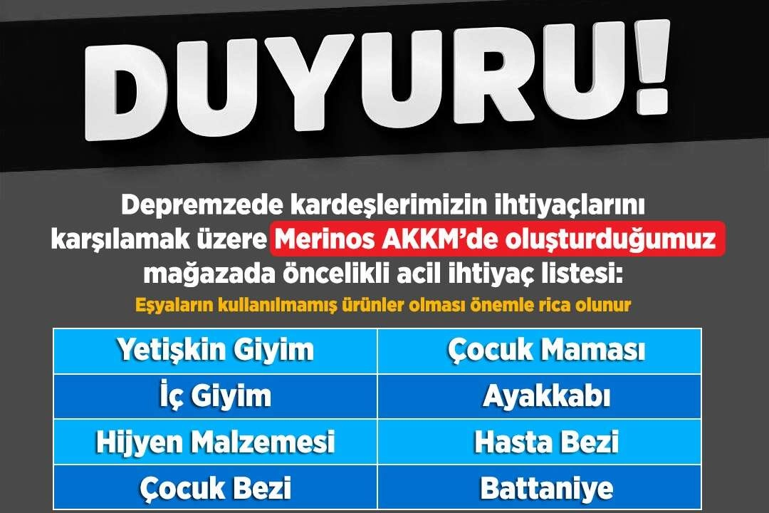 Sevgili Bursalılar! Giyim, hijyen ve sağlık malzemeleri ile battaniyeleri ‘depremzede kardeşlerimizle paylaşmak üzere’ aşağıdaki teslimat noktalarına bırakabilirsiniz.