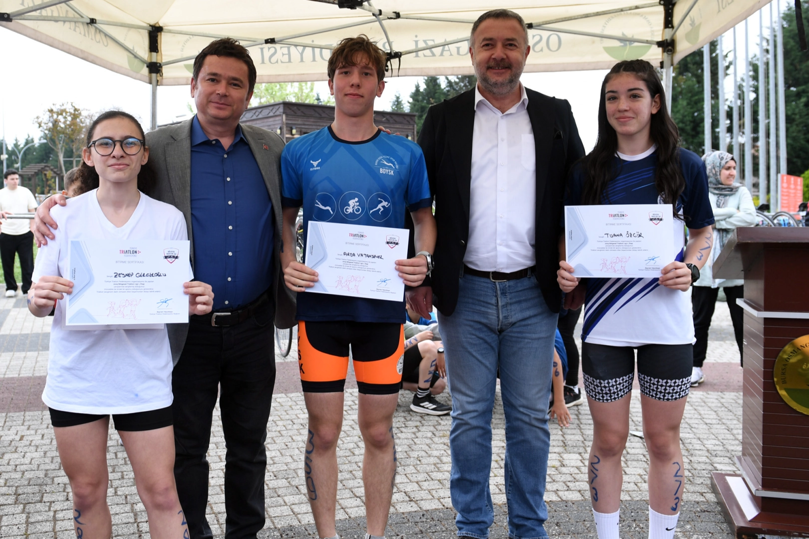 Türkiye Triatlon Federasyonu tarafından düzenlenen ve Osmangazi Belediyesi’nin desteklediği yarışlara katılan sporculara başarı sertifikalarını Osmangazi Belediye Başkanı Erkan Aydın ve Osmangazi Belediyespor Kulübü Yönetim Kurulu Başkanı Fatih Karayılan takdim etti. Tüm sporcuları tebrik eden Başkan Aydın, “Türkiye Triatlon Federasyonu Bölgesel Ligi 4. Bölge 1. Etap Duatlon Müsabakası, 4 ilden toplam 103 sporcunun katılımıyla gerçekleşti. Yarışlara katılan gençlerimiz, sportif rekabeti deneyimleme fırsatı buldu. İnanıyorum ki sportif yaşamlarında daha büyük başarılara imza atacaklar. Osmangazi Belediyesi olarak her zaman sporun, sporcunun ve gençlerimizin yanındayız” dedi.