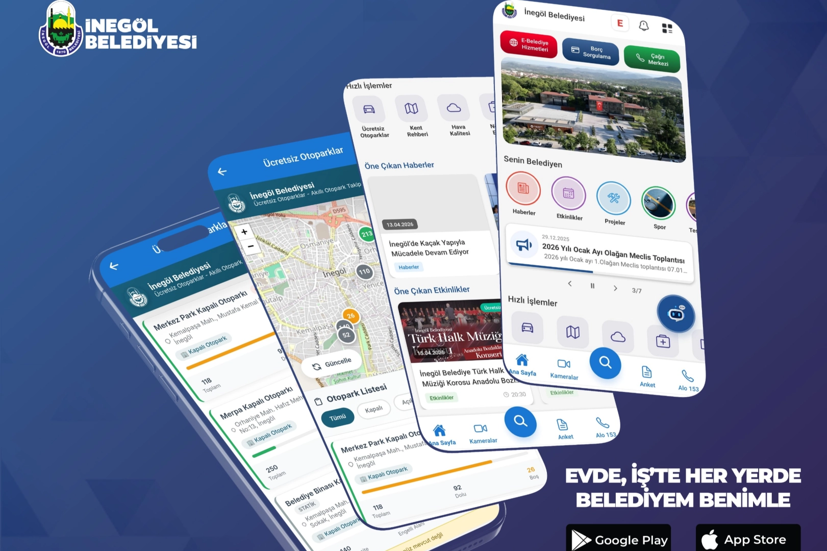 İnegöl Belediyesi’nin “Senin Belediyen” yaklaşımıyla hayata geçirdiği bu yenilikçi uygulama, vatandaşların belediye ile olan iletişimini güçlendirirken; hızlı, şeffaf ve erişilebilir hizmet anlayışını da bir üst seviyeye taşıyor. Yenilenen uygulama sayesinde İnegöllüler, şehirle ilgili ihtiyaç duydukları bilgiye tek dokunuşla ulaşabilecek. Uygulama IOS ve Android tüm mobil cihazlarda kullanılabiliyor.