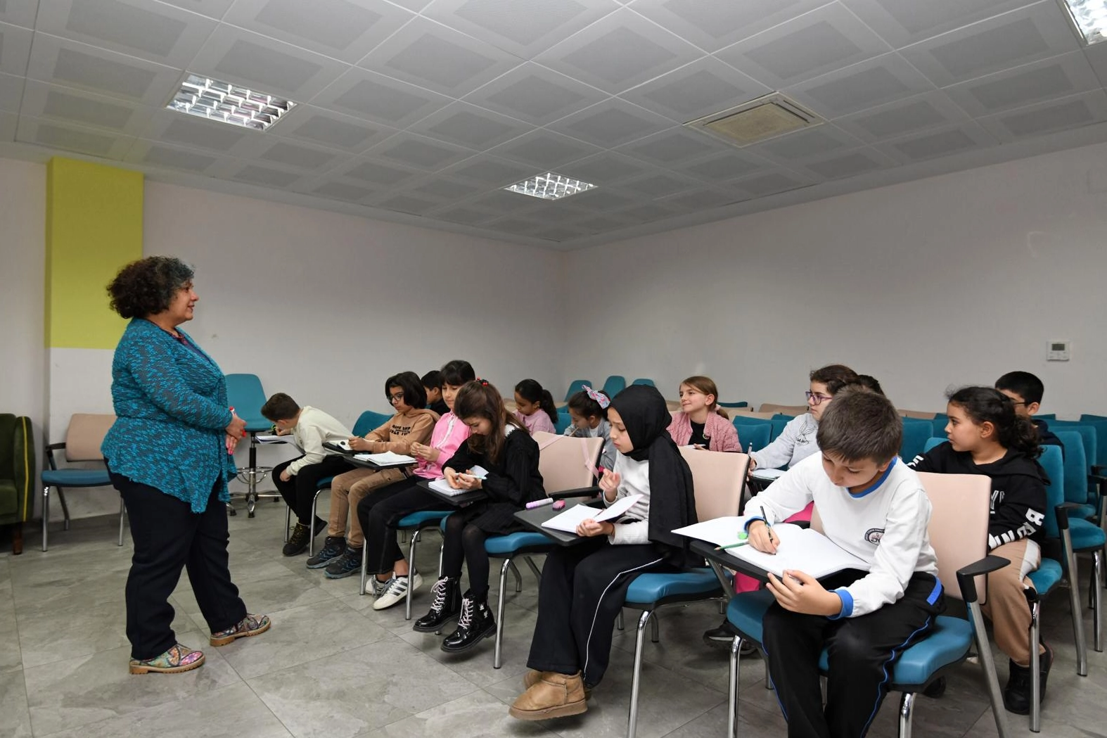 Küçük Yazarlar Atölyesi’nde çocuklara edebiyatı sevdirdiklerini söyleyen kurs eğitmeni Pelin Yılmaz, “Bu atölyede, daha önce temel eğitimi almış çocuklarla çalışıyoruz. Yani aslında onların bildiklerinin üzerine inşa ediyor, yazmayı daha derinlikli ve daha üretken bir noktaya taşıyoruz. Bugün küçük bir tekrar yaptık. Ardından çocuklar hemen yazmaya başladı. Konuların nasıl bulunacağını, bir hikayenin nereden doğduğunu birlikte konuştuk. Sürecin sonunda her çocuğumuzun elinde yayınlanabilir düzeyde tamamlanmış bir öykü olacak. Zaten birçoğunun önceki dönemlerden yazdığı öyküler var. Bu atölyede onları daha da geliştirmiş olacağız. Son aşamada çocuklarımız yazdıkları öyküleri resimleyecek. Tüm bu çalışmaları bir araya getirerek kitap çıkarmayı hedefliyoruz. Bizim için en büyük kazanım, çocukların kendi hikayelerini kalıcı bir esere dönüştürdüklerini görmek. Bu süreçte emeği geçen herkese teşekkür ediyorum” ifadelerine yer verdi.