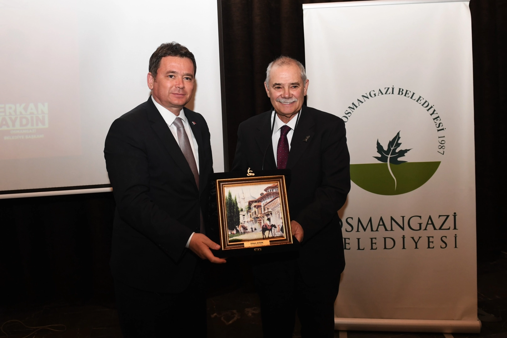 Düzenlenen söyleşinin ardından Osmangazi Belediye Başkanı Erkan Aydın, Cumhuriyet Vakfı Genel Sekreteri Işık Kansu’ya günün anısına hediye takdim etti.
