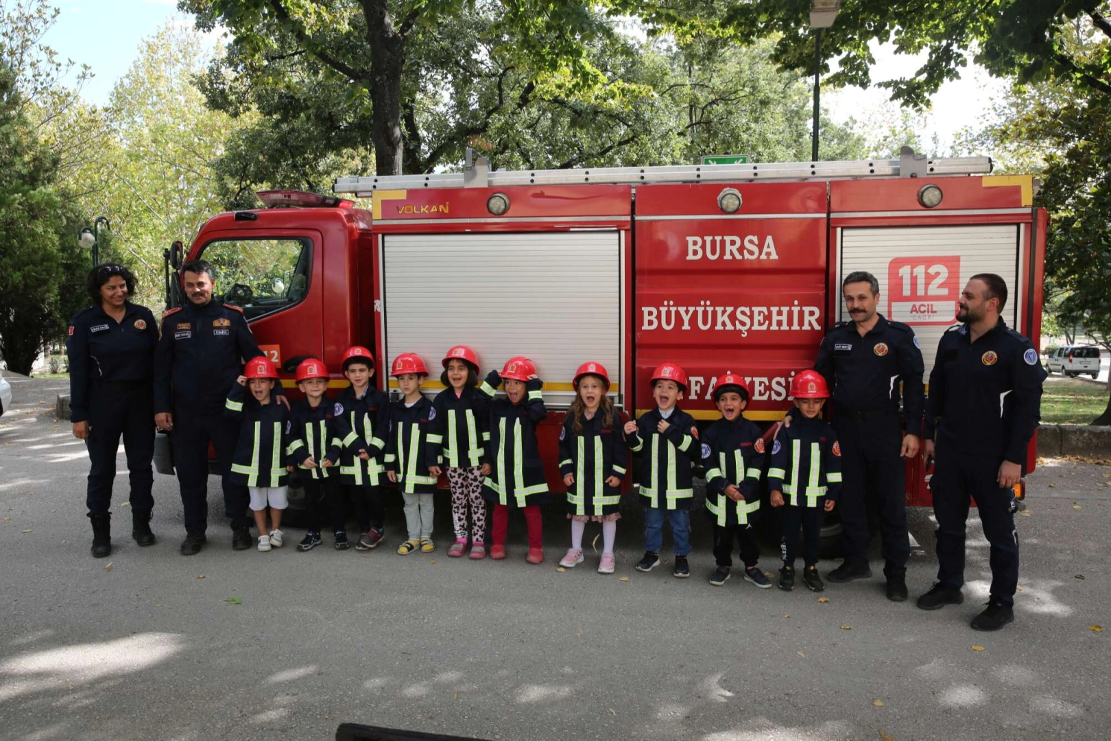 Bu yıl İtfaiye Haftası etkinliklerine, Büyükşehir Belediyesi’nin Ana Kucağı Eğitim Merkezlerinde eğitim gören minikler de dahil edildi. İtfaiye ekipleri tarafından Karacabey, Gemlik, Hamitler, İnegöl, Yenişehir ve Gürsu Ana Kucaklarındaki miniklere hem itfaiyenin çalışma alanları hem de yangından korunma yolları hakkında bilgiler verdi. İtfaiye kıyafetleri giyip itfaiye araçlarına binen çocuklar, minik itfaiyeciler olarak hatıra fotoğrafları da çektirdi.
