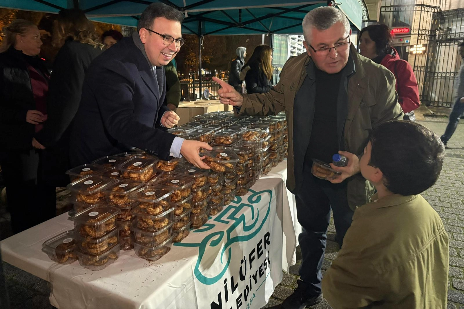Dağıtım programına Nilüfer Belediye Başkan Yardımcısı Okan Şahin ve belediye meclis üyeleri de katıldı. Cami çıkışında vatandaşlarla bir araya gelen Şahin ve meclis üyeleri, mahalle sakinlerinin kandilini kutlayarak ikramlarda bulundu.