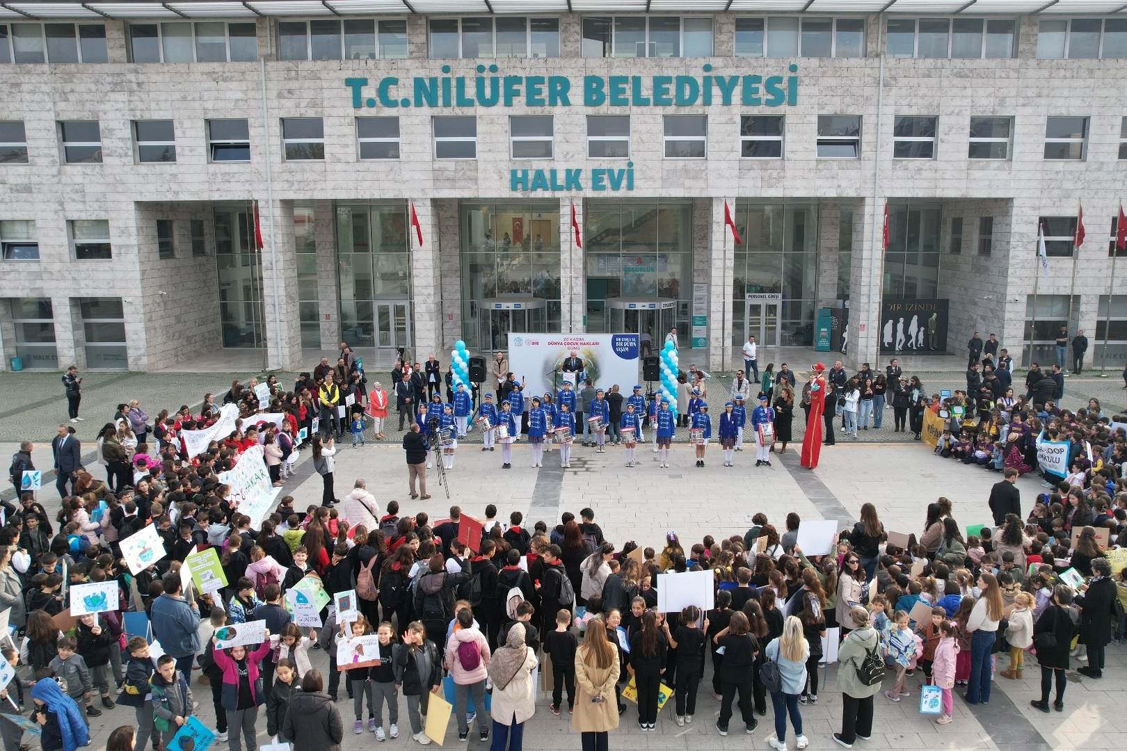 Nilüfer Belediyesi ve Nilüfer Kent Konseyi iş birliğiyle düzenlenen 20 Kasım Dünya Çocuk Hakları Günü etkinliği, bu yıl çevre bilinciyle birleşerek renkli görüntülere sahne oldu. Nilüferli çocuklar, bu özel günü kendi belirledikleri “Bir Damla Su, Bir Dünya Yaşam” mottosuyla küresel iklim krizine ve su sıkıntısına dikkat çekerek, kutladılar.