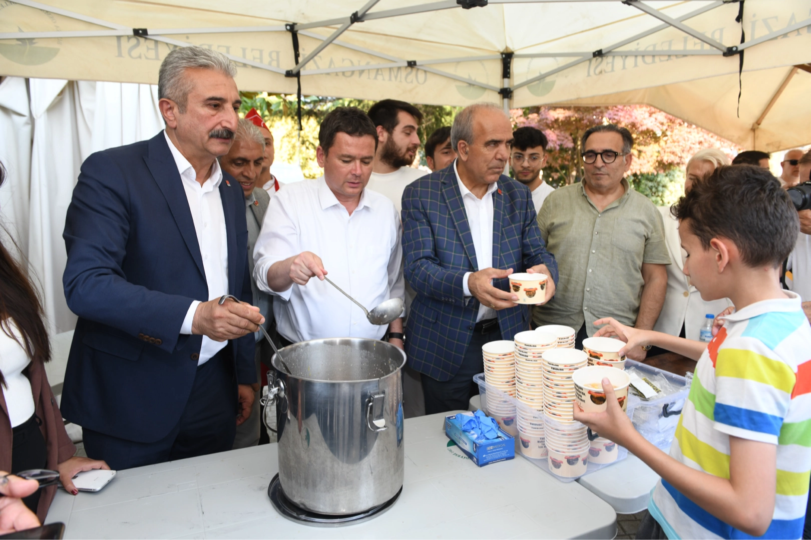 Osmangazi Belediyesi tarafından organize edilen ve geleneksel hale gelen aşure ikramı bu yıl da yoğun ilgi gördü. İlk olarak Soğukkuyu Mahallesi’nde, ardından da Demirtaş Mahallesi’nde toplam iki bin kişilik aşure dağıtımı yapıldı. Soğukkuyu Kent Lokantası ve Genç Kafe önünde gerçekleşen etkinliğe Osmangazi Belediye Başkanı Erkan Aydın’ın yanı sıra CHP Bursa İl Başkanı Nihat Yeşiltaş, CHP Osmangazi İlçe Başkanı Raşit Gürbüz, belediye meclis üyeleri, partililer ve çok sayıda vatandaş katıldı. Başkan Erkan Aydın, kazan başına geçerek aşure dağıttı. Vatandaşlar, etkinliğe büyük ilgi gösterdi.