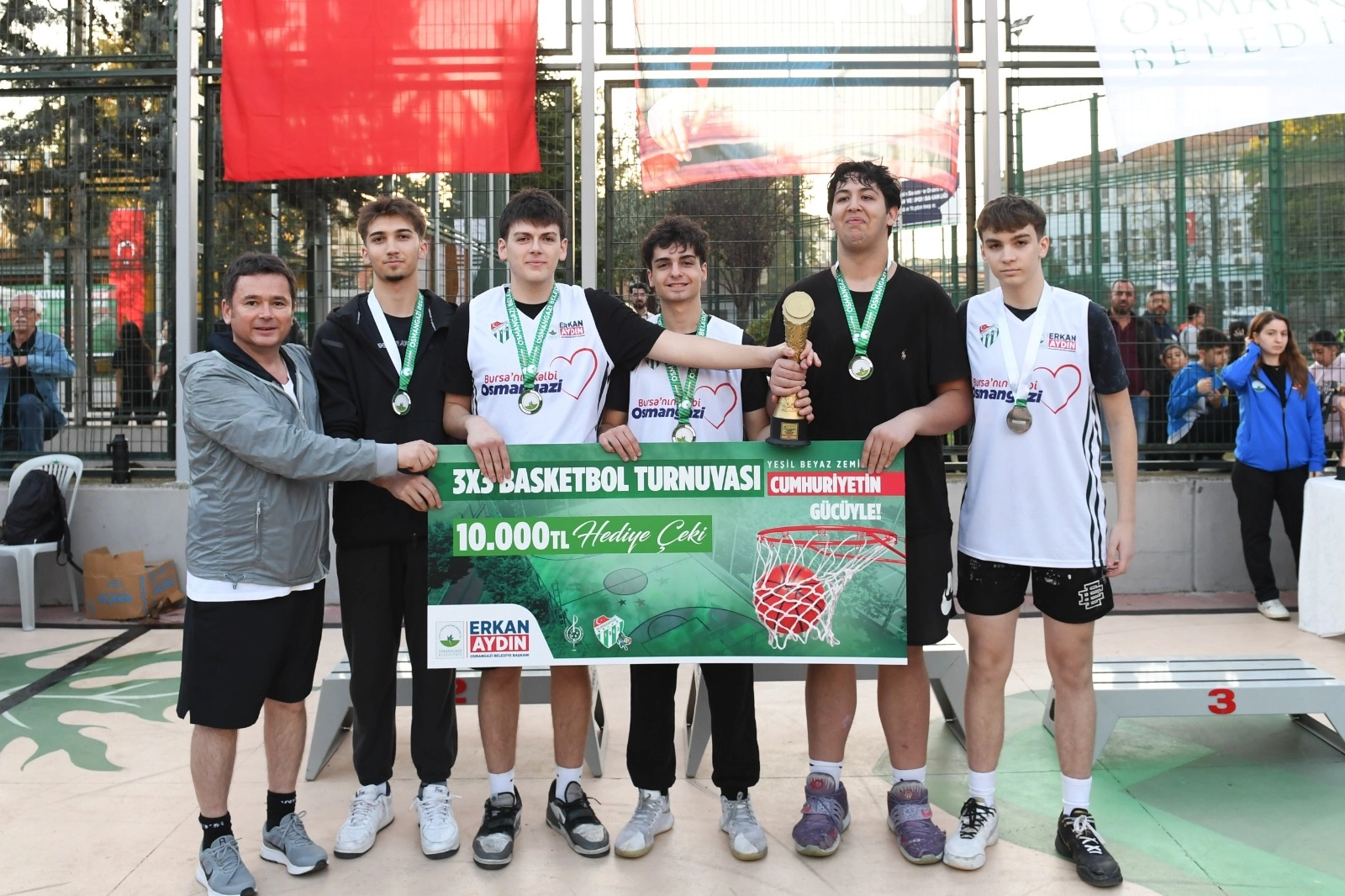 Cumhuriyetin 102’inci yılı etkinlikleri kapsamında Soğukkuyu Basketbol Sahası’nda düzenlenen 29 Ekim Cumhuriyet Bayramı 3x3 Basketbol Turnuvası, nefes kesen mücadelelere sahne oldu. Turnuvaya Bursa, İstanbul, Yalova, Çanakkale ve yurt dışından, 27’si erkek 3’ü kadın olmak üzere toplam 30 takım katıldı. Eleme usulü yapılan maçlar erkekler ve bayanlar olmak üzere 14-18, 19-40 yaş kategorilerinde düzenlendi. Turnuvada tüm rakiplerini eleyerek kendi kategorilerinde birinci olan takımlara kupa, madalya ve ödülleri, Osmangazi Belediye Başkanı Erkan Aydın ile protokol üyeleri tarafından takdim edildi.