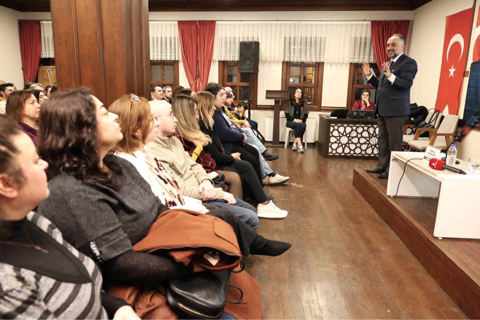 “Doğa Filozofları ile Beş Çayı” söyleşisinde Sosyolog ve Yazar Kemal Karadayı, düşüncelerini ifade etmekten çekinmeyen, merak duygusunu canlı tutan ve birlikte düşünmenin gücüne inanan Osmangazililerle bir araya geldi. Yoğun katılımla gerçekleşen etkinlikte Karadayı, Sokrates öncesi filozofları günümüz perspektifinden ele alarak felsefenin günlük yaşamla olan bağını örneklerle anlattı.