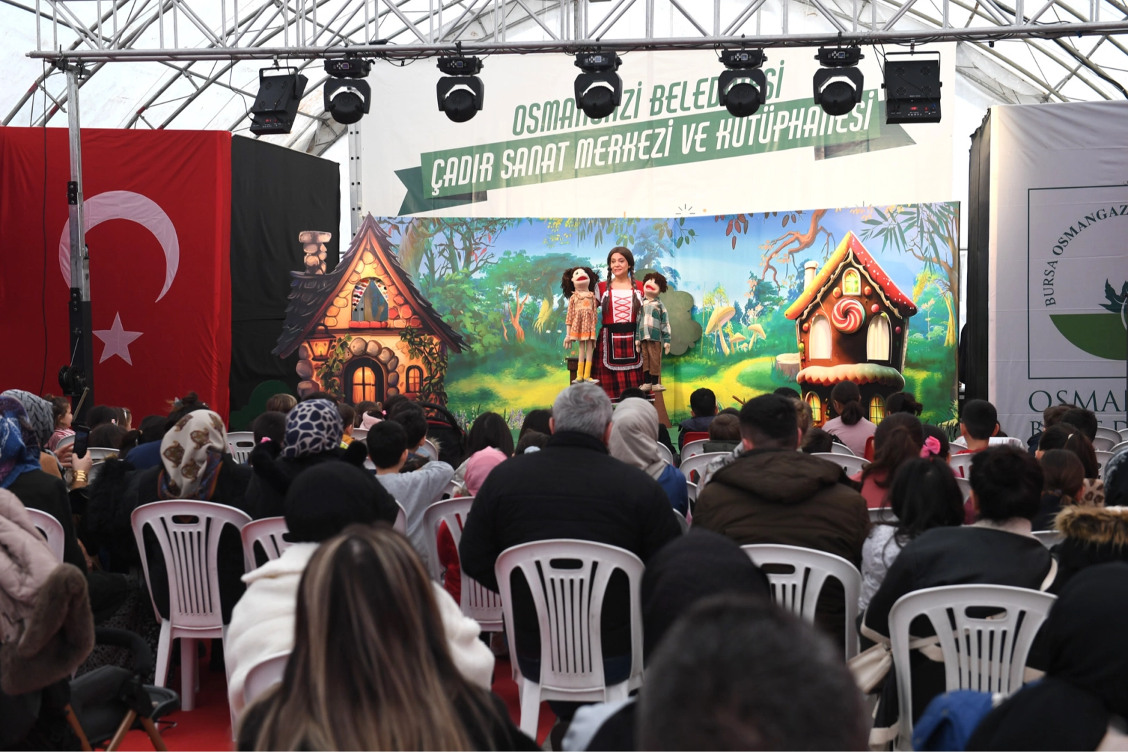 Osmangazi Belediyesi tarafından ‘Yarıyıl Şenliği’ kapsamında Yunuseli mahallesinde kurulan Çadır Sanat Merkezi ve Kütüphanesi’ne giden çocuklar, öğretici ve eğlendirici etkinliklere katılarak tatillerini dolu dolu geçiriyor. Yunuseli kapalı pazar alanında kurulan çadırda, her gün farklı etkinlikler yer alıyor. Yarıyıl Şenliği programının dördüncü gününde Grimm kardeşlerin dünyaca ünlü masalı Hansel ile Gretel sahnelendi. Funda Güler’in hem yönettiği hem de oynadığı tek kişilik oyun, çocukların büyük ilgisini topladı. Çadırı tıklım tıklım dolduran çocuklar, oyunu büyük bir dikkat ile izledi. Çocukların izlerken büyük keyif aldığı oyunda, zengin olmak için yanlış yola sapan yetişkinler ile düştükleri zor durumdan kurtulmaya çalışan çocukların hikayesi komik bir dille anlatıldı.