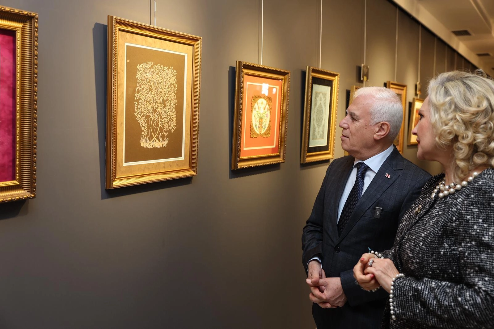 Sanatçı Dilek Erim'in geleneksel Türk sanatlarının iki zarif disiplini ebru ve katı buluşturduğu ‘Kağıtta Açan Çiçekler’ adlı sergisi, Ressam Şefik Bursalı Sanatlar Galerisi’nde izlenime açıldı. Suyun akışkan hafızasıyla kâğıdın sabır isteyen oyma estetiğini bir araya getiren sergi, toplam 65 eserden oluşan özel bir seçki sunuyor. Her biri tek ve tekrar edilemez olan ebru desenleri, katı sanatının boşluk–doluluk dengesiyle birleşerek izleyiciyi hem geleneğin köklü mirasına hem de çağdaş bir estetik arayışa davet ediyor. Sabrın, emeğin ve incelikli bir ustalığın izlerini taşıyan çalışmalar, 1 Mart Pazar gününe kadar ziyaret edilebilecek.