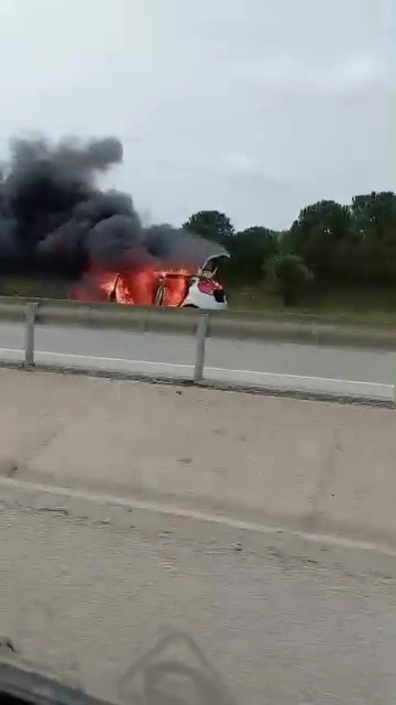 Bursa’da Karacabey-Bandırma istikameti üzerinde seyir halinde olan bir otomobil henüz bilinmeyen bir nedenle alev aldı. Kısa sürede büyüyen yangın, çevredeki sürücülerde paniğe yol açtı.