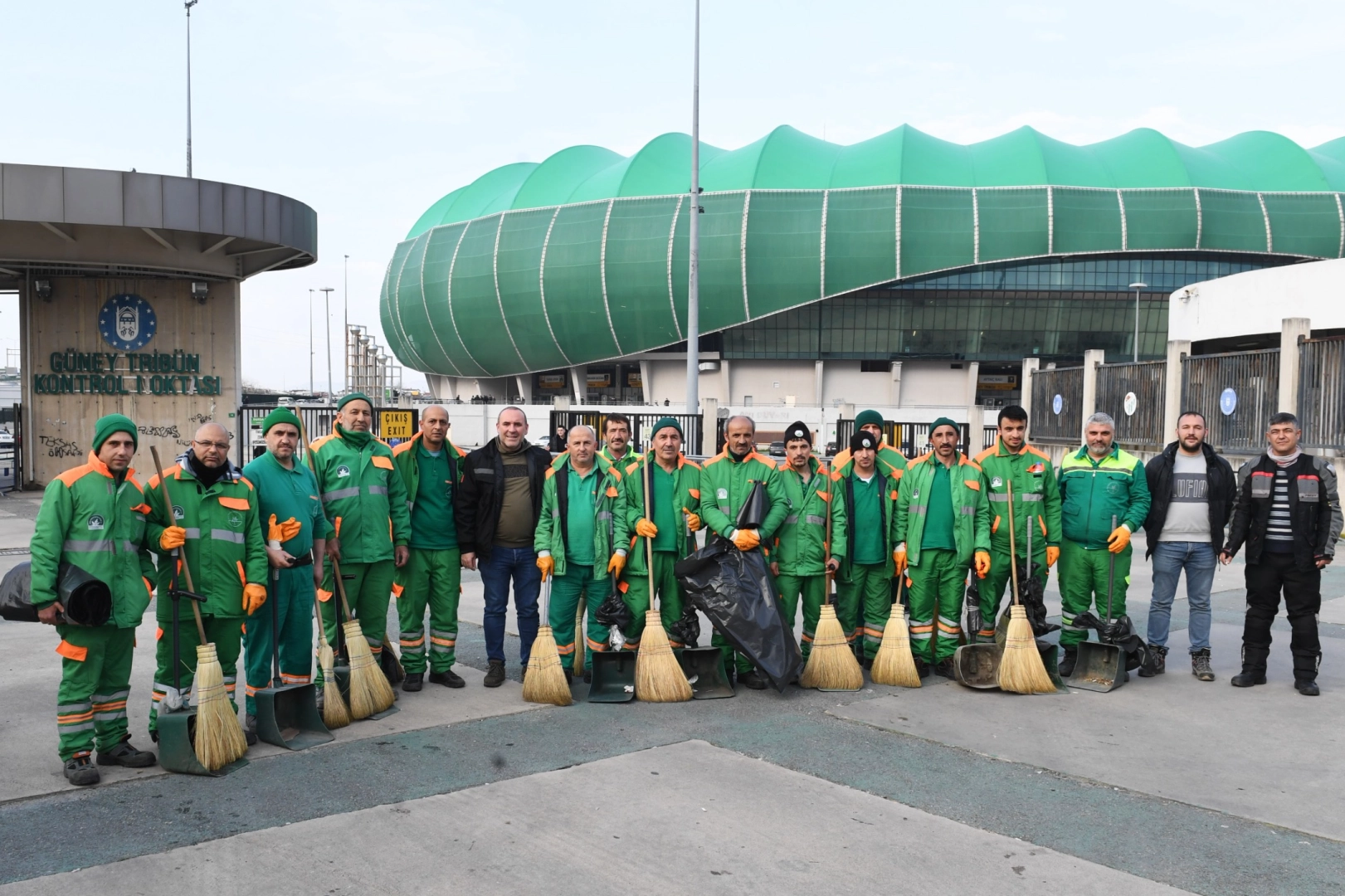 Osmangazi Belediyesi Temizlik İşleri Müdürlüğü ekipleri, bu hafta oynanan ve Bursaspor’un 2-0 kazandığı Ergene Velimeşespor karşılaşmasının ardından temizlik çalışması gerçekleştirdi. Stadyum çevresinde, koridorlarda ve tribünlerde iki gün boyunca temizlik çalışması yürüten ekipler, 43 bin 361 kişi kapasiteli dev stadyumu baştan aşağı temizleyerek bir sonraki karşılaşma için hazır hale getirdi.