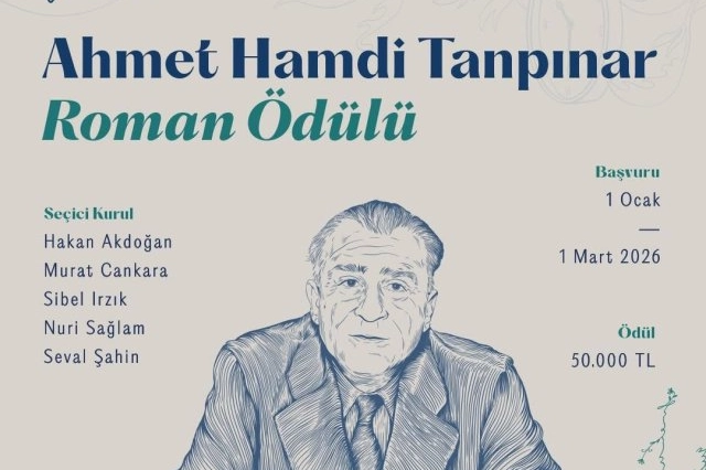 Geçtiğimiz yılı Nâzım Hikmet’e adayarak çeşitli kültür-sanat etkinlikleri düzenleyen Bursa Büyükşehir Belediyesi, 2025 Temmuz–2026 Temmuz dönemini Ahmet Hamdi Tanpınar’a ithaf ederek bu süreci ‘Bursa Tanpınar Yılı’ ilan etti. Edebiyat dünyasına yeni ve nitelikli eserler kazandırmayı hedefleyen Büyükşehir Belediyesi, bu kapsamda ‘Ahmet Hamdi Tanpınar Roman Ödülü’ yarışması düzenledi. Ahmet Hamdi Tanpınar’ın düşünce ve estetik dünyasından ilham alan romanların değerlendirileceği ödül için başvurular, 1 Mart 2026 tarihlerinr kadar kabul edilecek. Hakan Akdoğan, Murat Cankara, Sibel Irkız, Nuri Sağlam ve Seval Şahin’den oluşan seçici kurulun değerlendirmesi sonucunda belirlenecek eser, Tanpınar’ın güçlü edebî mirasına katkı sunması hedefleniyor. Belirlenecek eser sahibine ise 50 bin TL ödül verilecek. Ayrıntılı bilgi ve başvuru koşulları: https://www.bursakultursanat.com/uploads/2026/01/ahmet-hamdi-tanpinar-roman-odulu-sartnamesi_7581767354419.pdf adresinden ulaşılabilir.