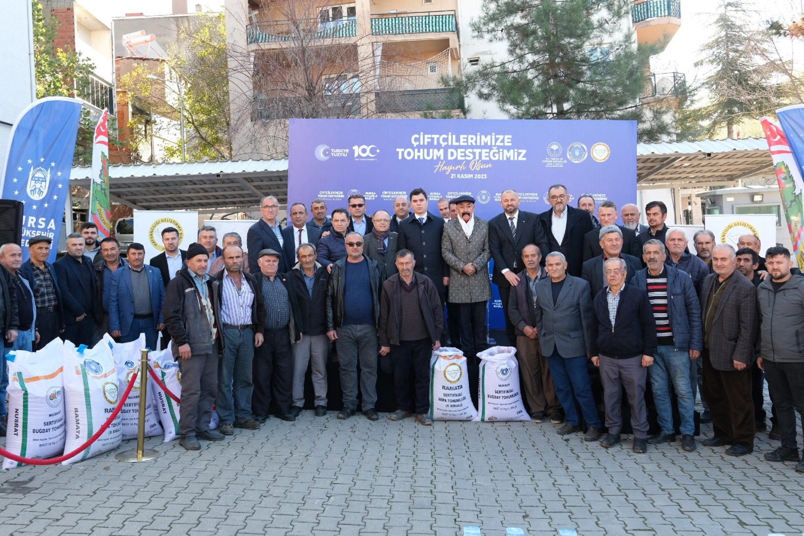 Bursa’da kırsal kalkınmanın sağlanması amacıyla fide-fidan temininden kaliteli üretimin sağlanmasına, ekipman desteğinden ürünlerin satış ve pazarlamasına kadar her alanda çiftçilere katkı sunan Büyükşehir Belediyesi, tarımda verimliliğin artması amacıyla desteklerini kesintisiz sürdürüyor. Bu çalışmalar kapsamında Büyükşehir Belediyesi, Bursa İli Hayvancılığı Geliştirme Birliği ve Orhaneli İlçe Tarım ve Orman Müdürlüğü işbirliğinde 80 çiftçiye toplam 8 ton sertifikalı arpa ve buğday tohumu dağıtıldı.