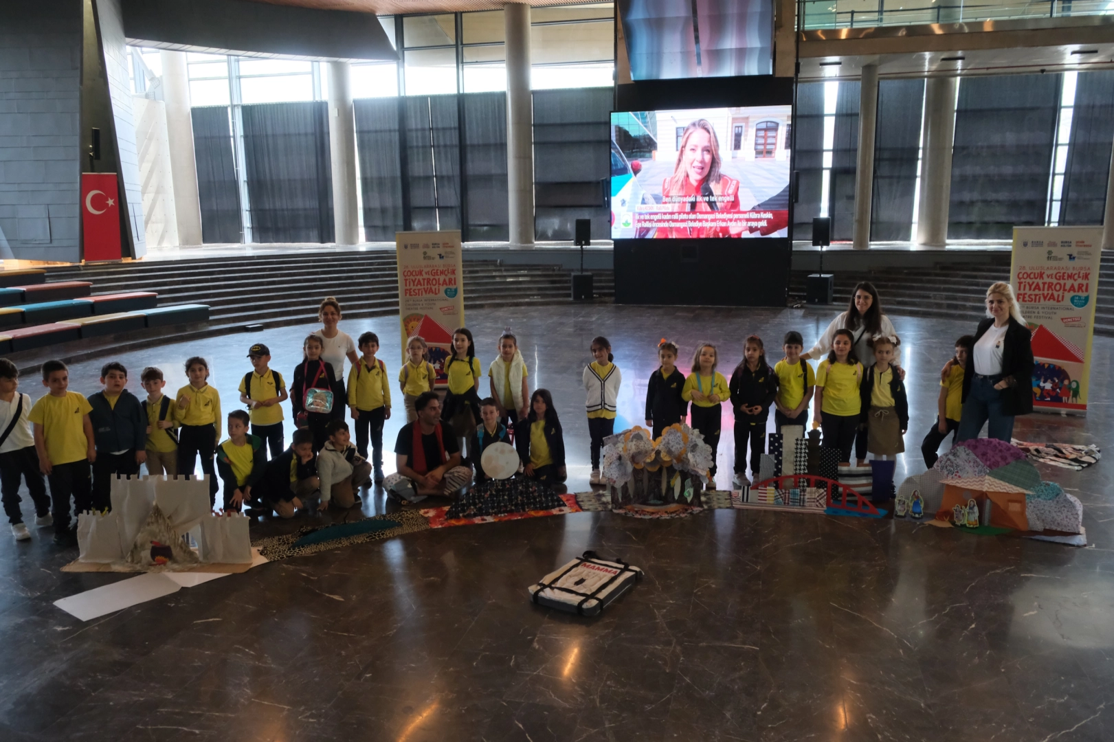 Yerli ve yabancı 20 tiyatro topluluğunun Bursa’nın 16 sahnesindeki gösterileriyle çocuk ve gençlerin hayatlarına dokunan 28. Uluslararası Çocuk ve Gençlik Tiyatroları Festivali, 5. gününde de ilham vermeye devam etti. Brezilya-Arjantin-Uruguay ortak yapımı Circo Delirio ekibinin ‘Mobil’ oyunu Tayyare Kültür Merkezi’nde sahne aldı. 20 yıllık grubun muhteşem gösterisinde, üç karakterin uzaydaki olasılıkları keşfettikleri anlar sahnelendi. Çağdaş sirk, komedi ve fiziksel tiyatronun dillerinin harmanlandığı oyun beğeniyle izlendi. Çocuklarıyla beraber oyunu izleyen velilere de çocukluk heyecanı yaşatan oyun büyük alkış aldı.