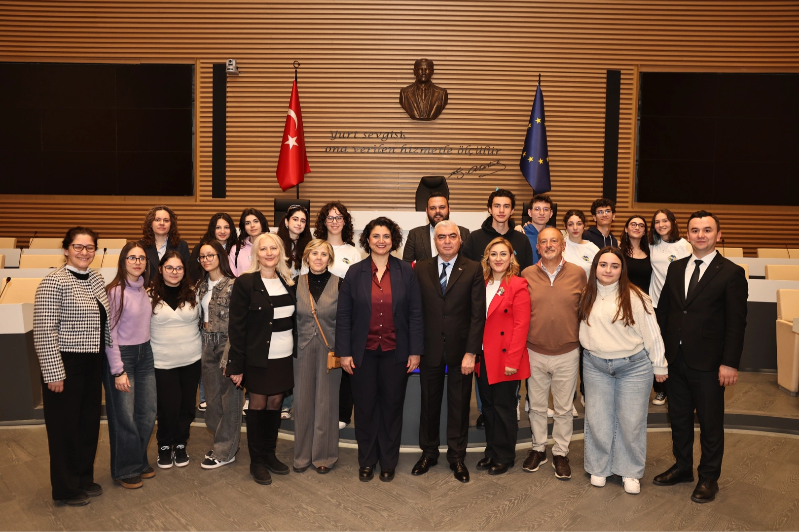 İklim değişikliği ve çevre temalı Erasmus + 2024-1-IT02-KA121-000207878 Projesi kapsamında bir araya gelen İtalyan ve Türk öğrenciler, Bursa ziyaretlerinde Nilüfer Belediyesi’ne konuk oldu. İtalya'nın IIS Della Corte Vanvitelli Cava de Tirreni Yükseköğretim Enstitüsü ile Ahmet Erdem Anadolu Lisesi’nden gelen iklim gönüllüsü gençler, Nilüfer Barış Meclisi’nde Nilüfer Belediye Başkan Yardımcısı Zerrin Güleş ile buluşarak çevre sorunları ve çözüm önerileri hakkında görüş alışverişinde bulundu. Ziyarette İtalyan öğretmenler Ciro Sorrentino ve Maria Rosaria Bisogno, Ahmet Erdem Anadolu Lisesi Müdürü İsmet Aksu, Müdür Yardımcısı Mücahid Altınışık, Erasmus Koordinatör Öğretmenler Özlem Özgür Başhan, Tülay Ünel Ustalar ve öğrenciler yer aldı.