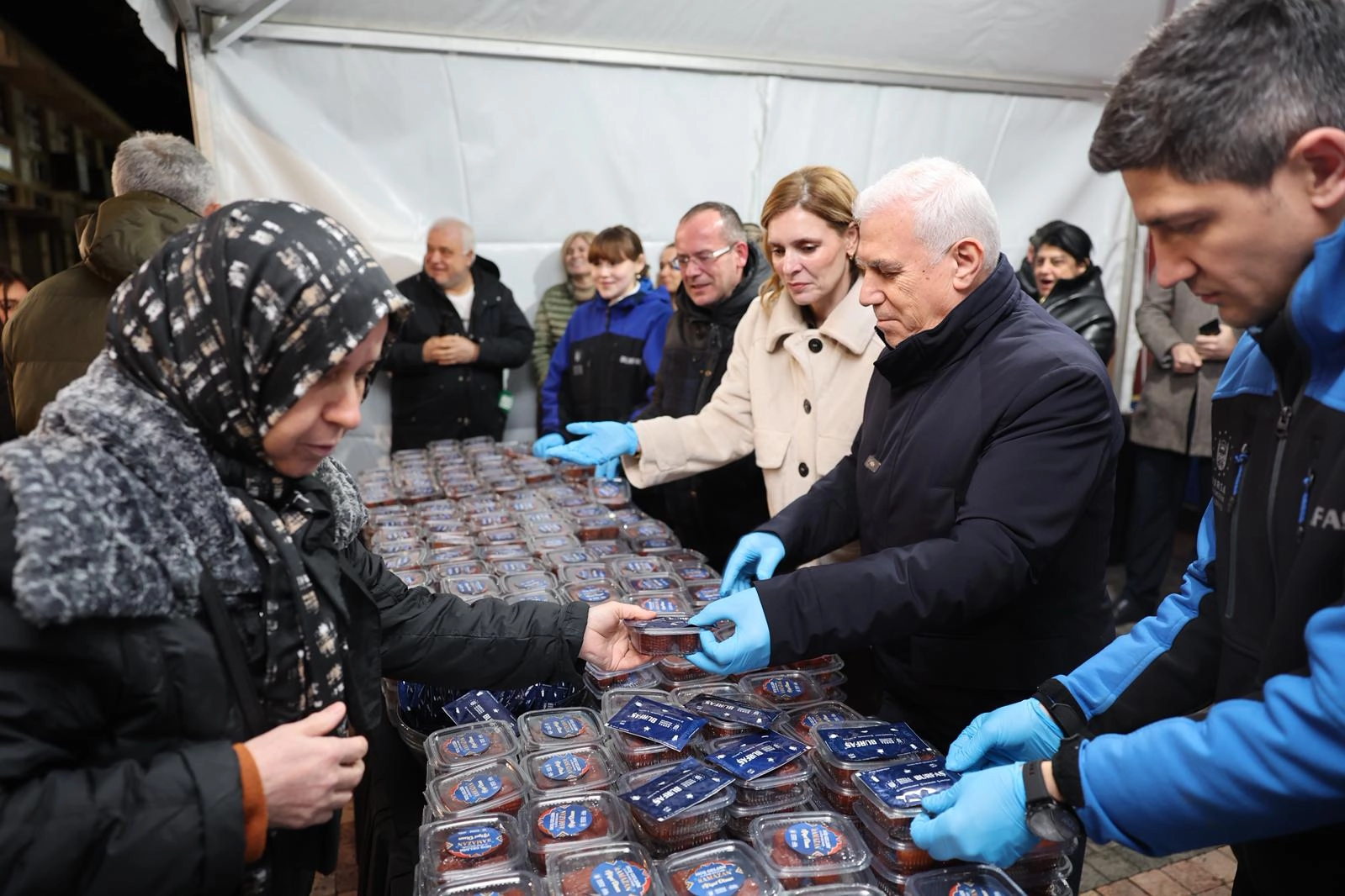 Bursa Büyükşehir Belediye Başkanı Mustafa Bozbey, eşi Seden Bozbey ile birlikte Ramazan ayının başlangıcında Ulu Cami’de kılınan ilk teravih namazının ardından, Ramazan'ın hayırlı ve bereketli olmasını dileyerek vatandaşlara tatlı ikramında bulundu.