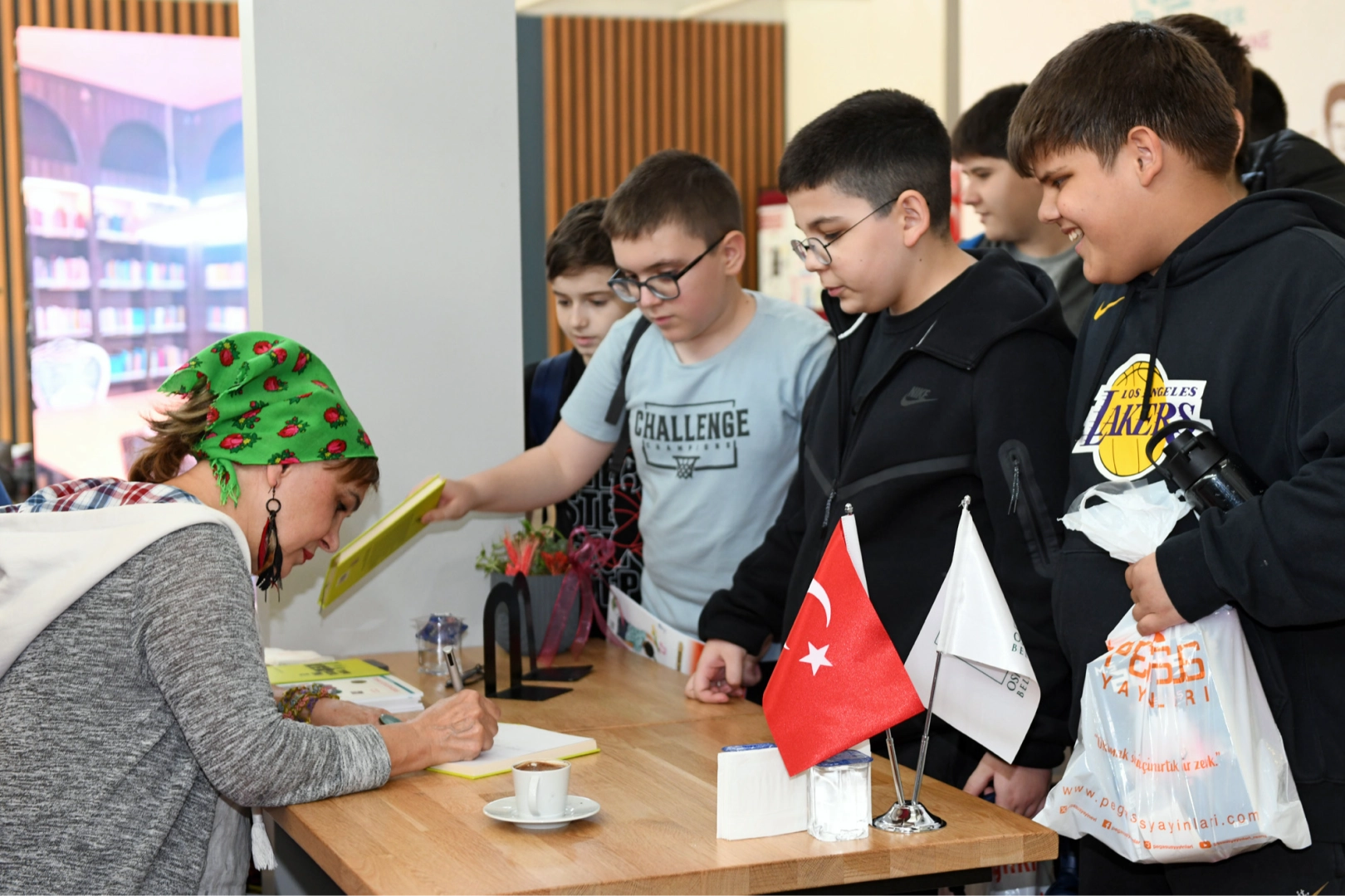 Osmangazi Belediyesi, 22. Bursa Kitap Fuarı’nda düzenlediği imza günü etkinliklerinde kitapseverler ile yazarları buluşturmaya devam ediyor. Bursa Kitap Fuarı’nda açtığı stantta her gün birbirinden değerli edebiyatçıları konuk eden Osmangazi Belediyesi, son olarak yazar Halime Yıldız’ı ağırladı. Çocuk ve gençlere yönelik kaleme aldığı kitaplar ile zengin bir okuyucu kitlesine sahip olan Halime Yıldız’ın imza gününe özellikle küçük kitapseverlerin ilgisi büyük oldu. Osmangazi Belediyesi tarafından kendilerine armağan edilen Kertenkelime ve Tuhaf Şeyler Adası kitaplarını alarak sıraya giren öğrenciler, kitapların yazarı Halime Yıldız ile hem tanışmanın hem kitaplarını imzalatmanın mutluluğunu yaşadı.